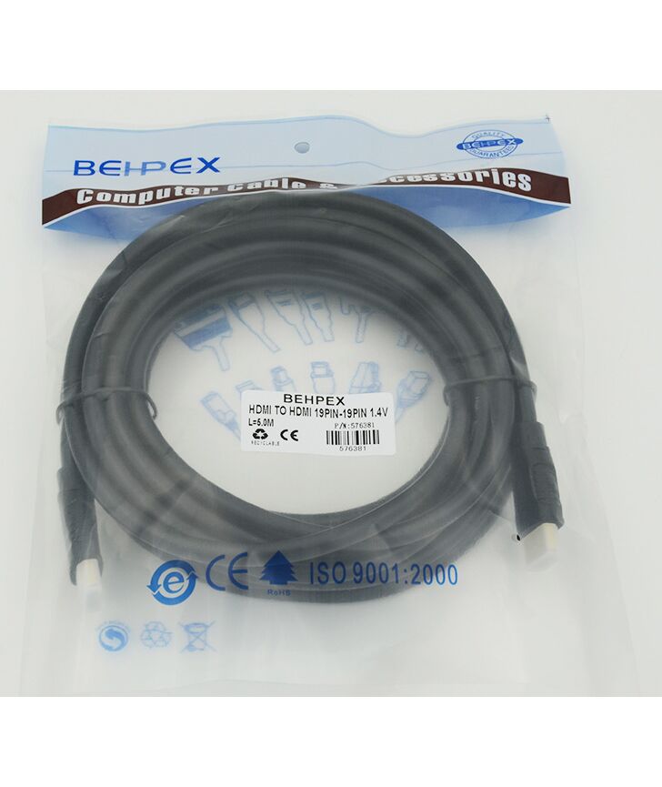 HDMI кабель для подключений компьютеров, ноутбуков Blu-Ray плееров и прочего оборудования к мониторам, телевизорам и проектора. Длина кабеля 5 метра, позволит разместить оборудование в оптимальном месте.