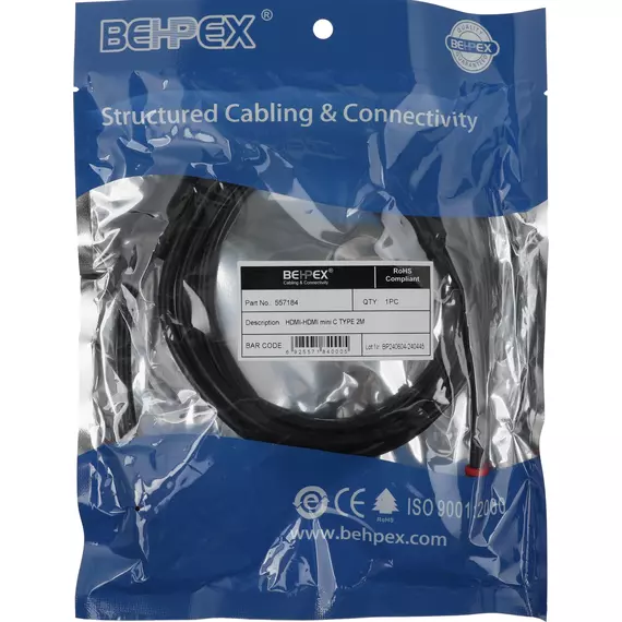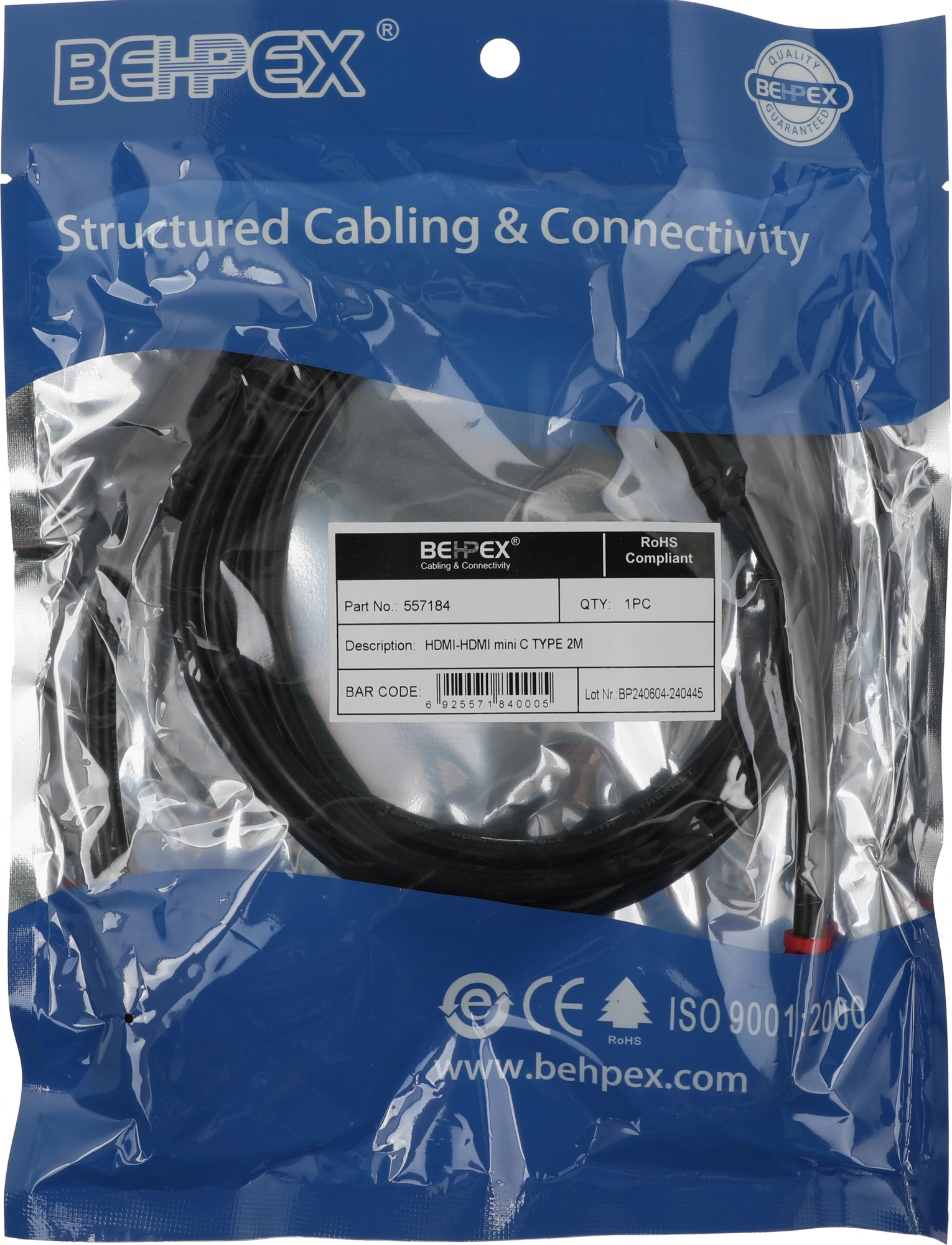 Mini-HDMI кабель для подключений ноутбуков, ультрабуков и планшетов к мониторам, телевизорам и проектора. Ферритовые кольца улучшают качество передачи данных. Длина кабеля 2 метра.