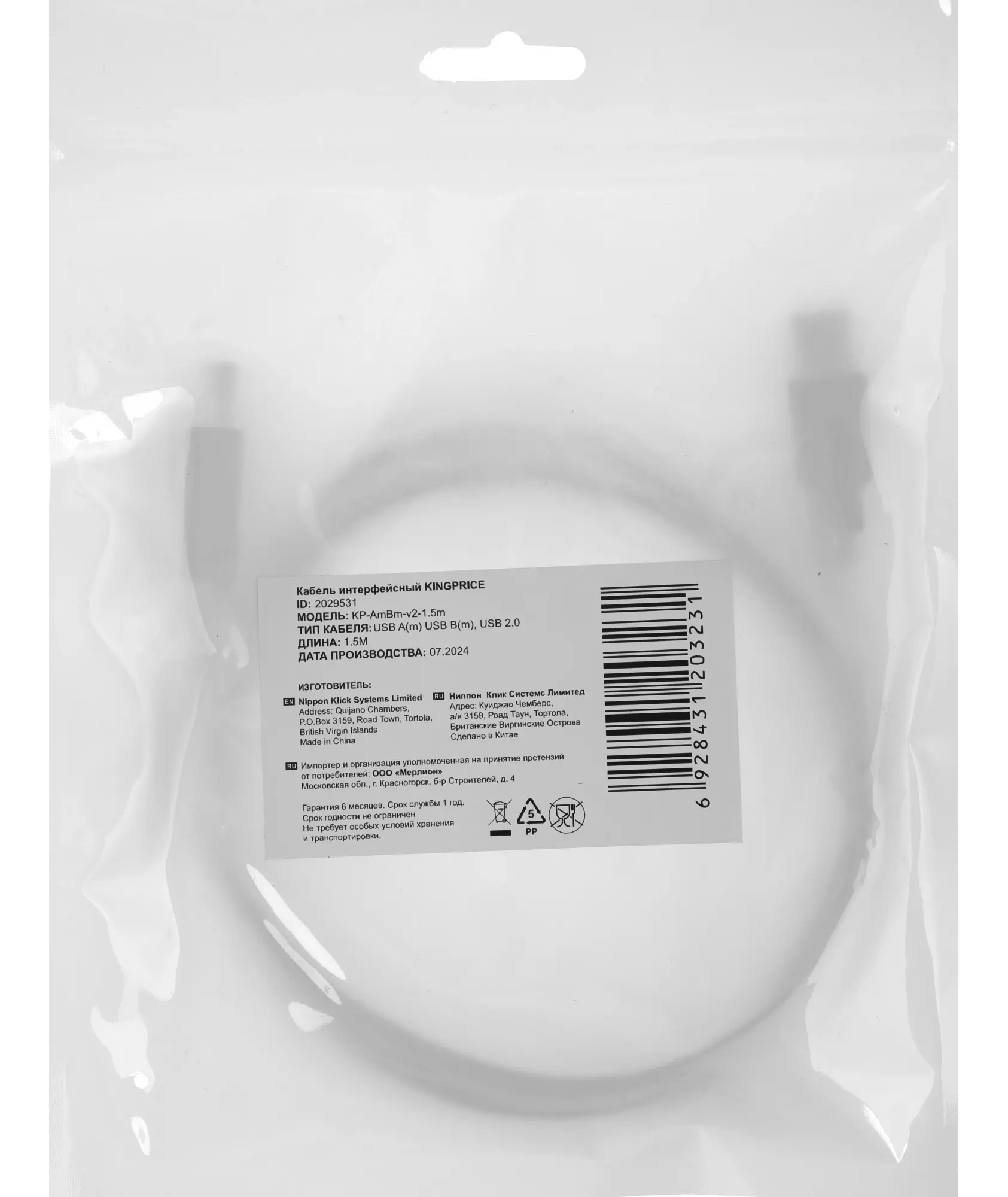 Кабель KingPrice USB A (m) USB B(m) 1.5м ver2.0 черный [KP-AMBM-V2-1.5M]