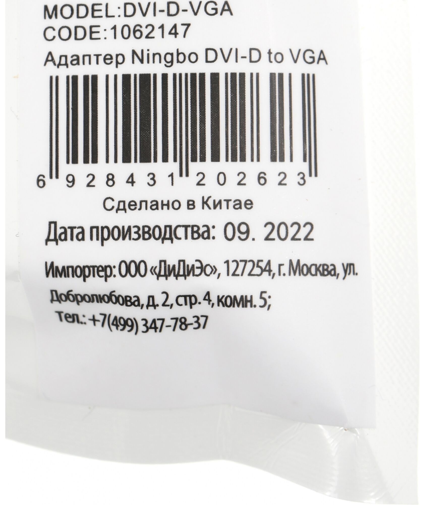 Наличие товара Ningbo DVI-D (m) VGA (f) 0.23м