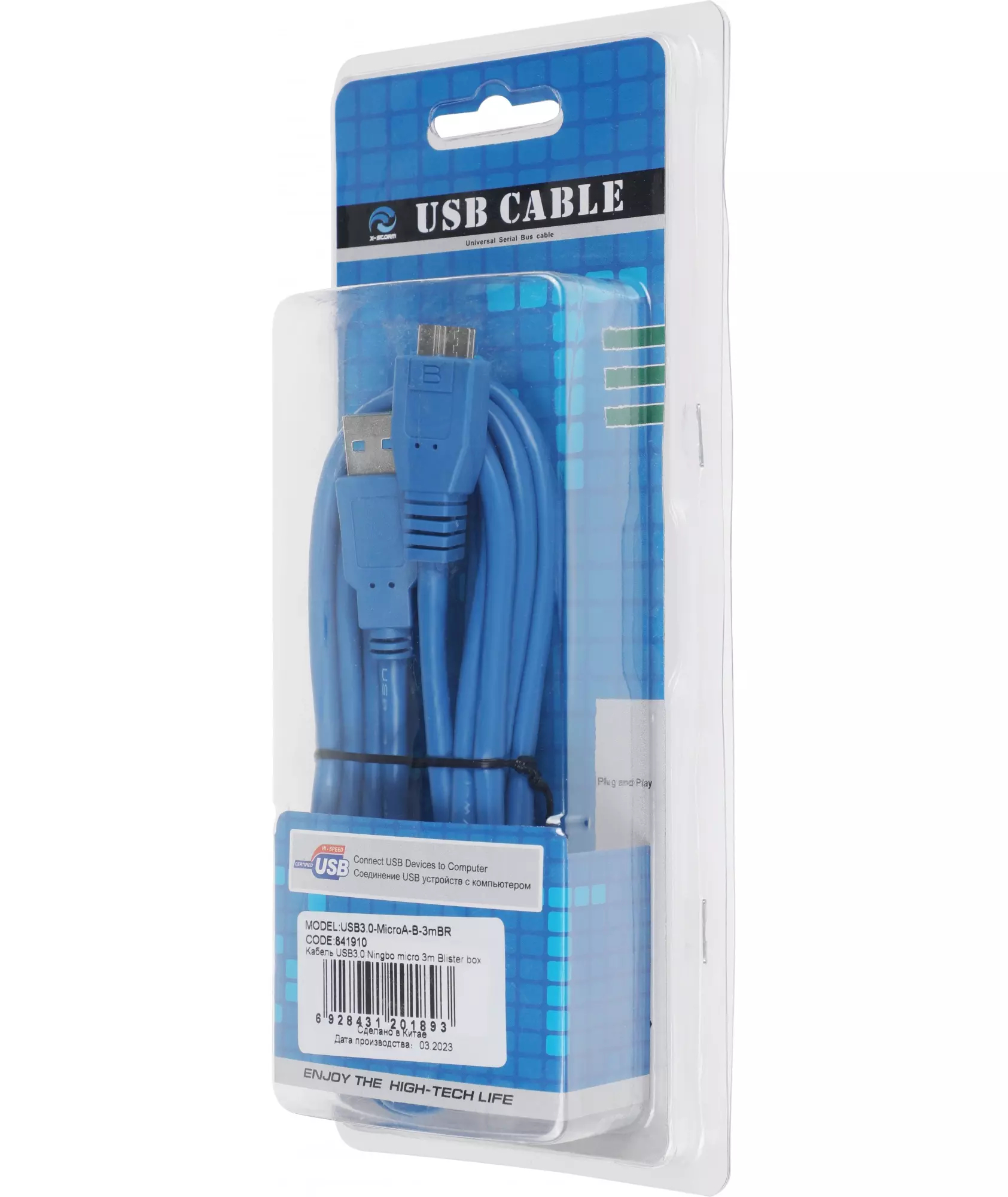 Кабель Ningbo micro USB 3.0 B (m) угловой USB A(m) 3м синий