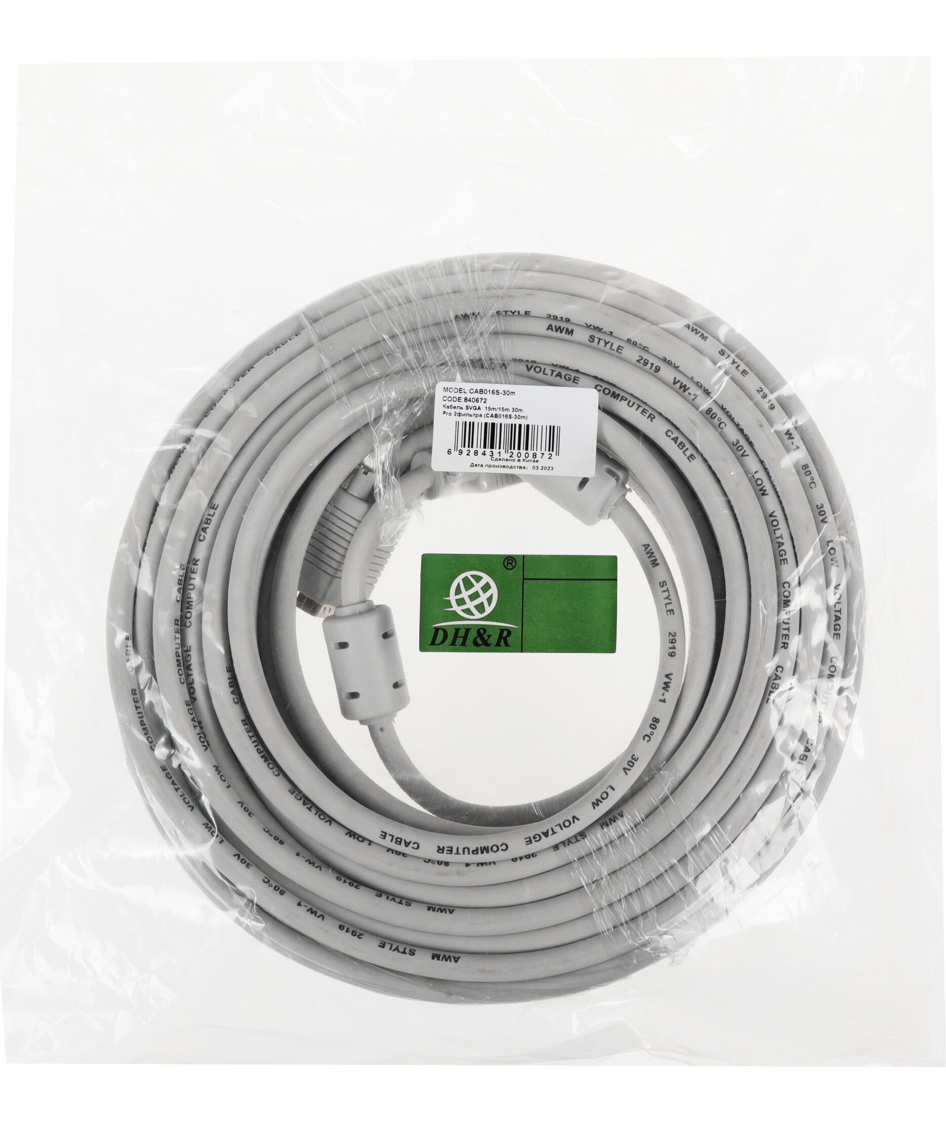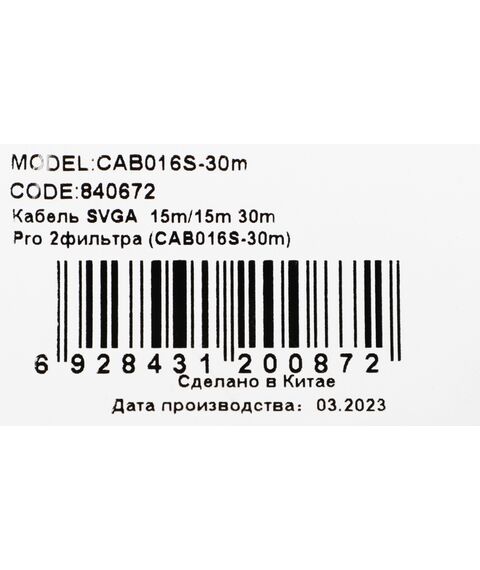 Кабель Ningbo VGA (m) VGA (m) 30м феррит.кольца [CAB016S]