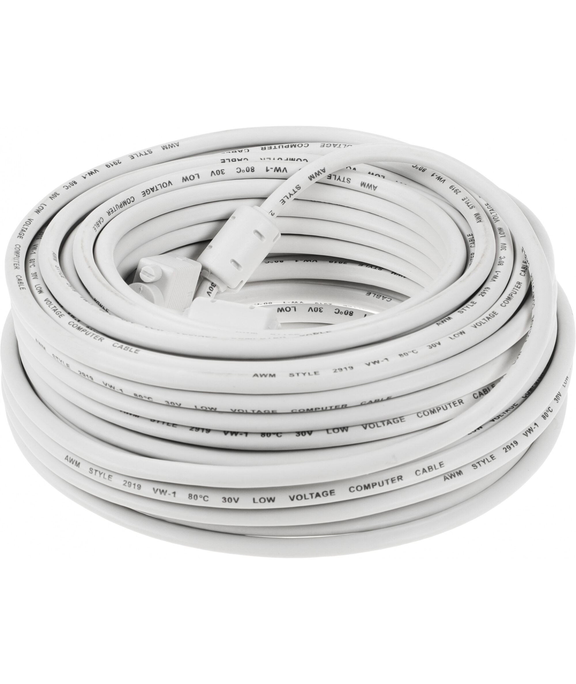 VGA кабель длиной 30 метров, дающий огромные возможности по размещению оборудования в больших помещениях. Встроенные ферритовые кольца блокируют помехи искажающие идущий по проводу сигнал, таким образом повышая его качество.
