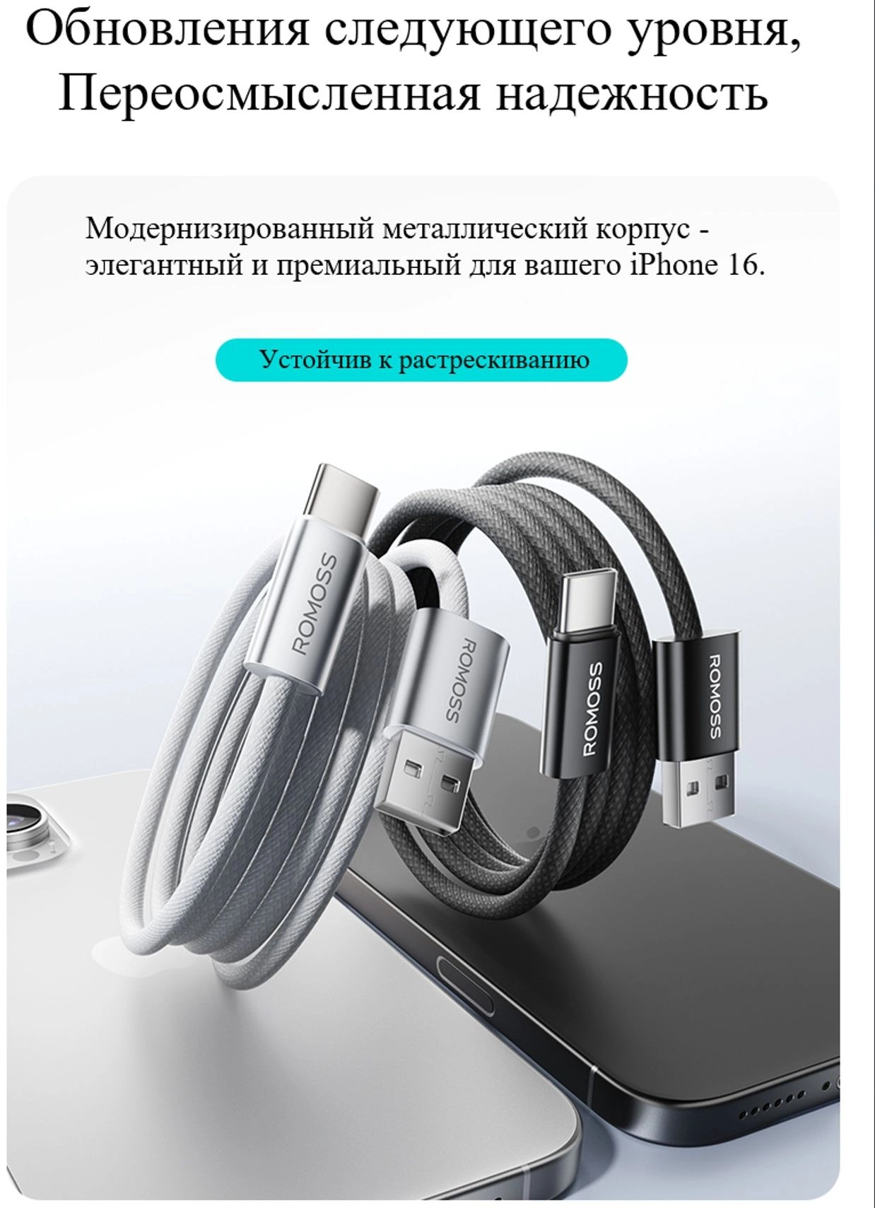 Кабель Romoss CB3038 ver2.0 USB (m)-USB Type-C (m) 1.2м черный [6958377525951]