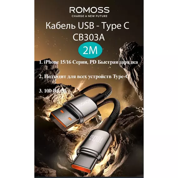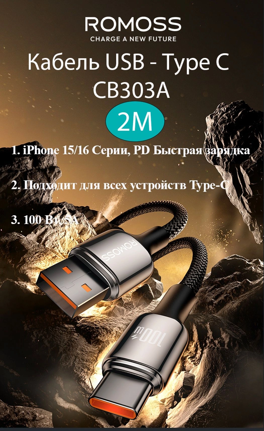 Кабель Romoss CB303A USB (m)-USB Type-C (m) 2м черный [6958377525975]