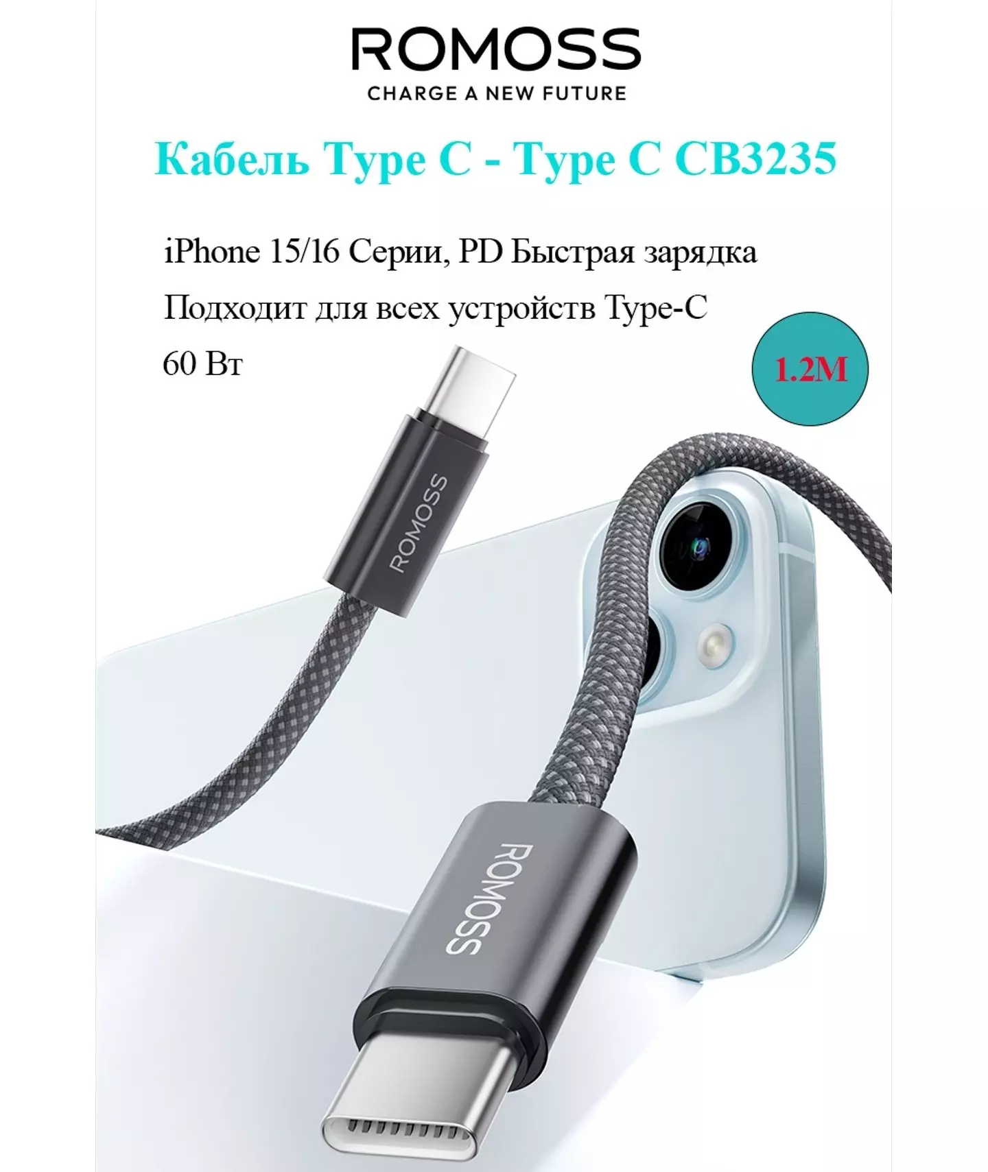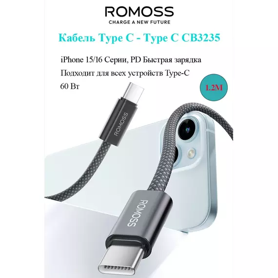 Кабель Romoss CB3235 USB Type-C (m)-USB Type-C (m) 1м серый [6958377525982]