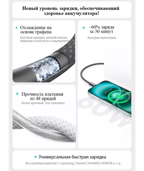 | Поддерживаемая мощность быстрой зарядки | 60 Вт |