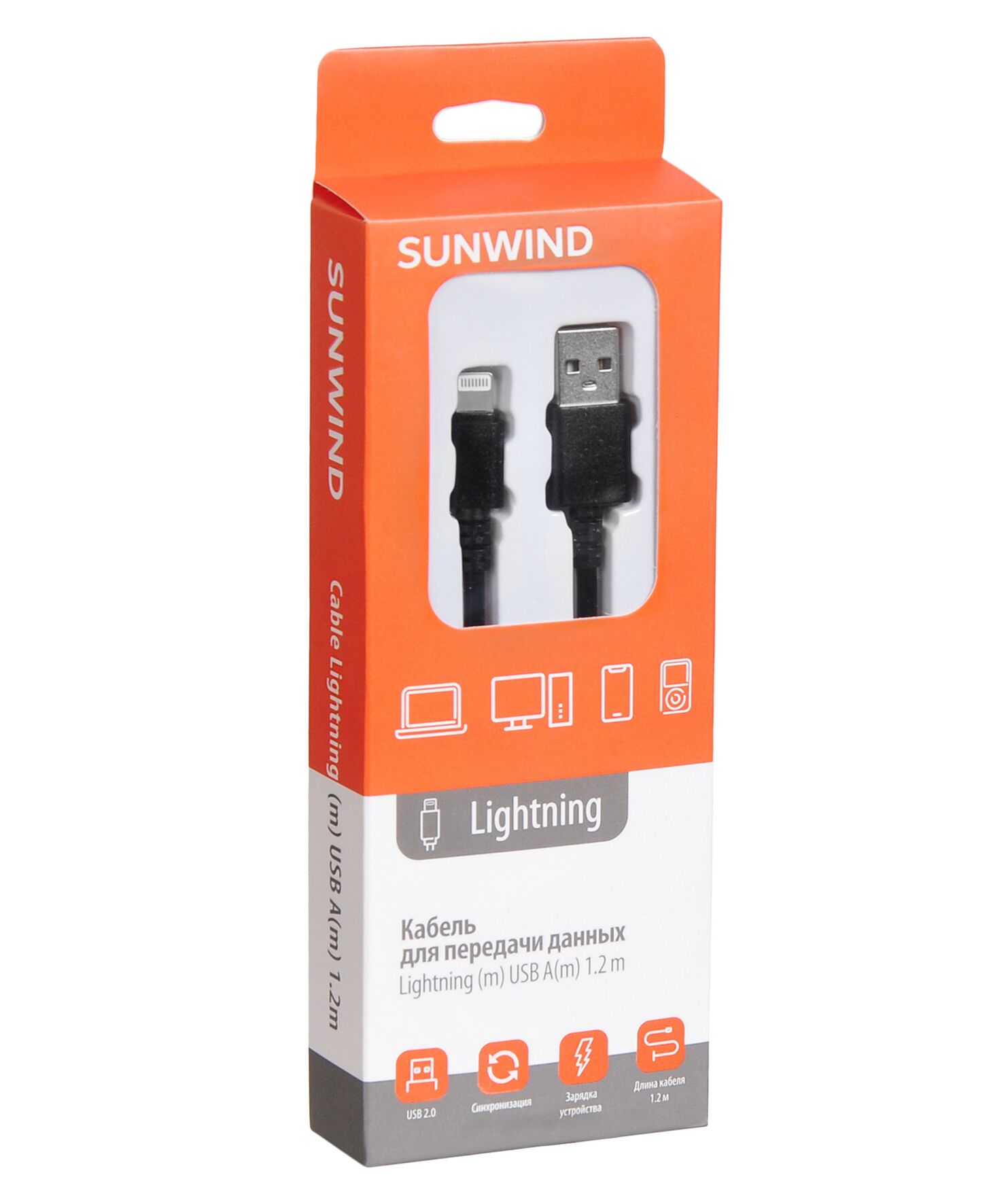 Кабель SunWind USB (m)-Lightning (m) 1.2м черный блистер