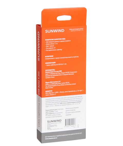 Описание SunWind USB (m)-Lightning (m) 1.2м