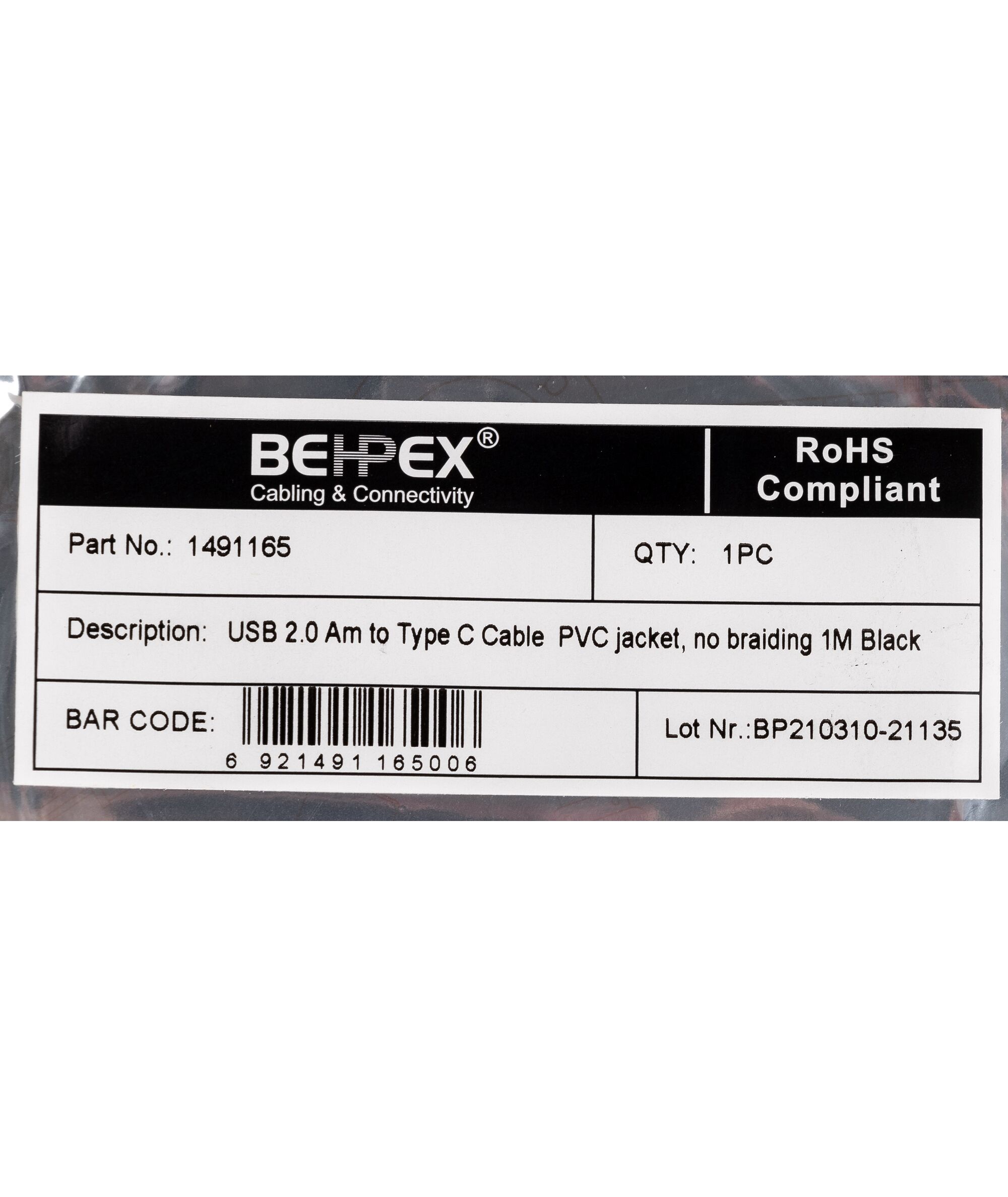 Кабель USB (m)-USB Type-C (m) 1м черный