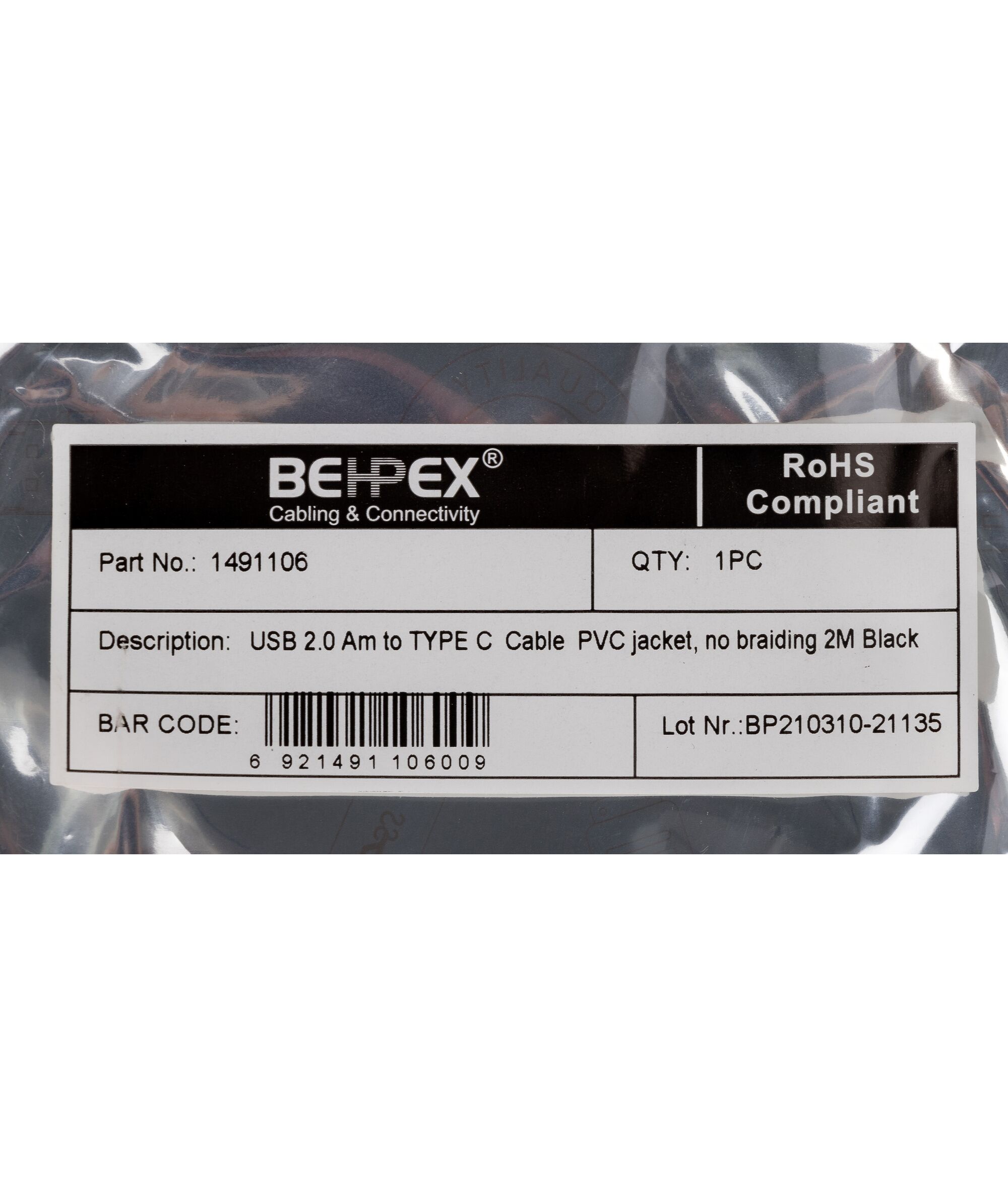 Кабель USB (m)-USB Type-C (m) 2м черный