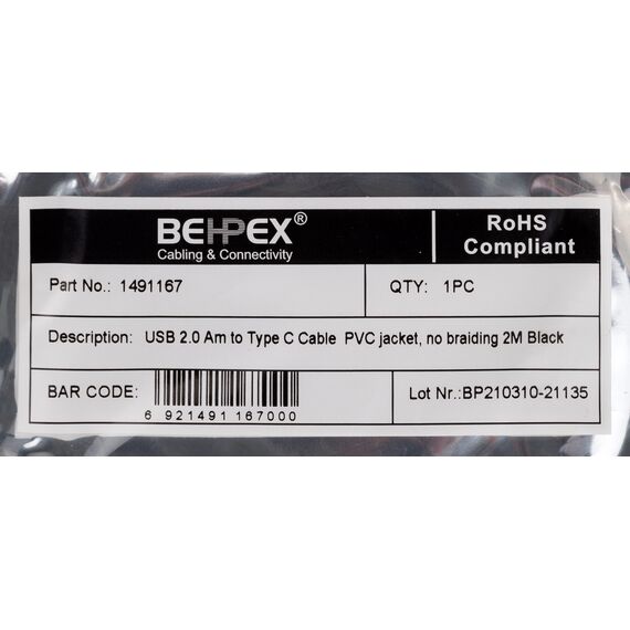 Кабель USB (m)-USB Type-C (m) 2м черный