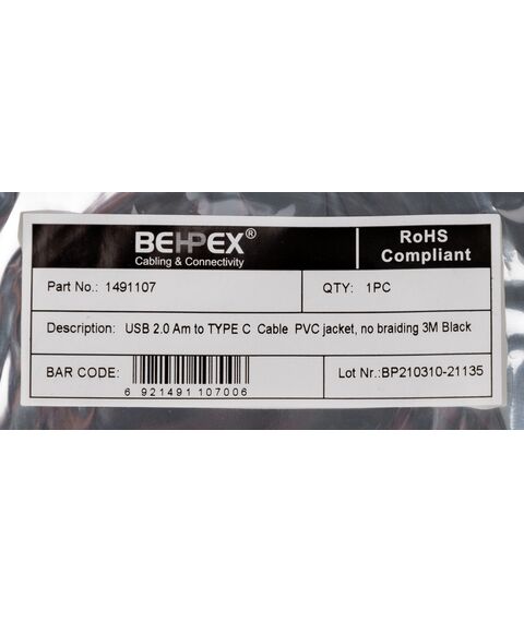 Кабель USB (m)-USB Type-C (m) 3м черный