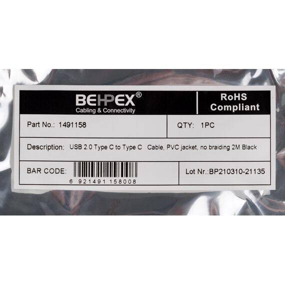 Кабель USB Type-C (m)-USB Type-C (m) 2м черный
