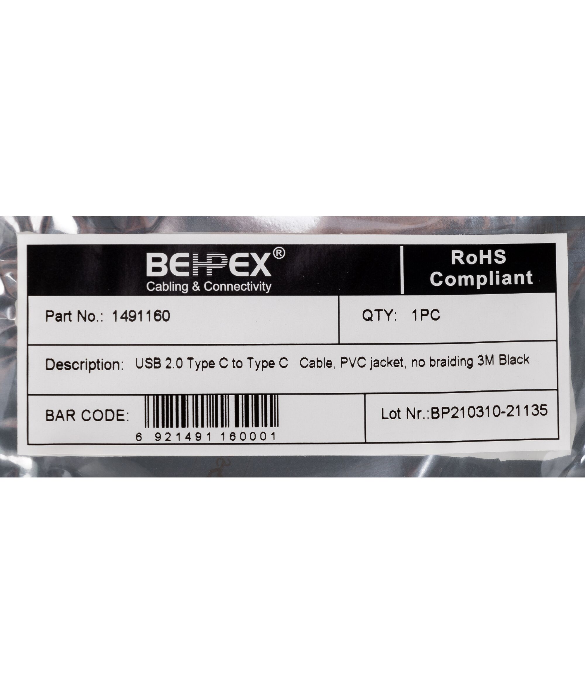 Кабель USB Type-C (m)-USB Type-C (m) 3м черный
