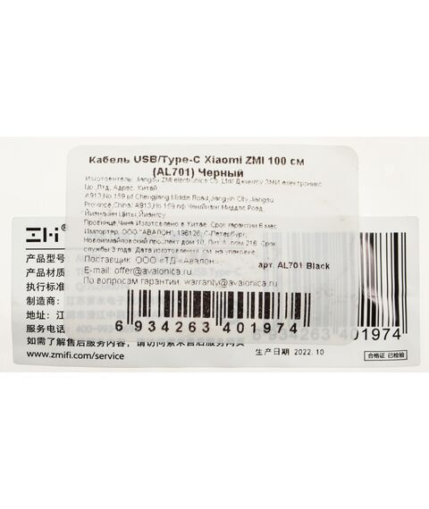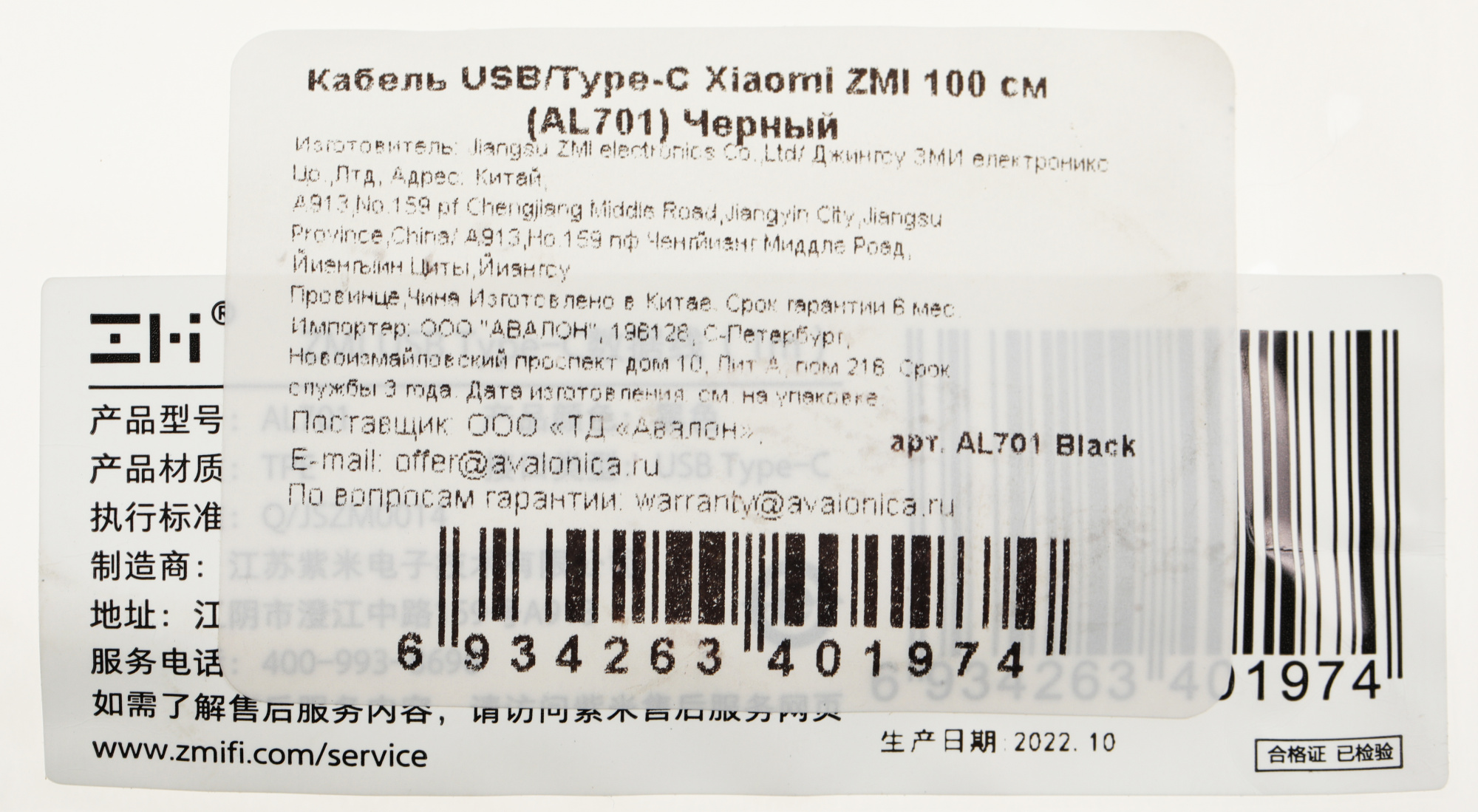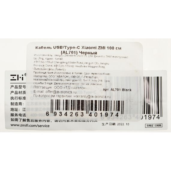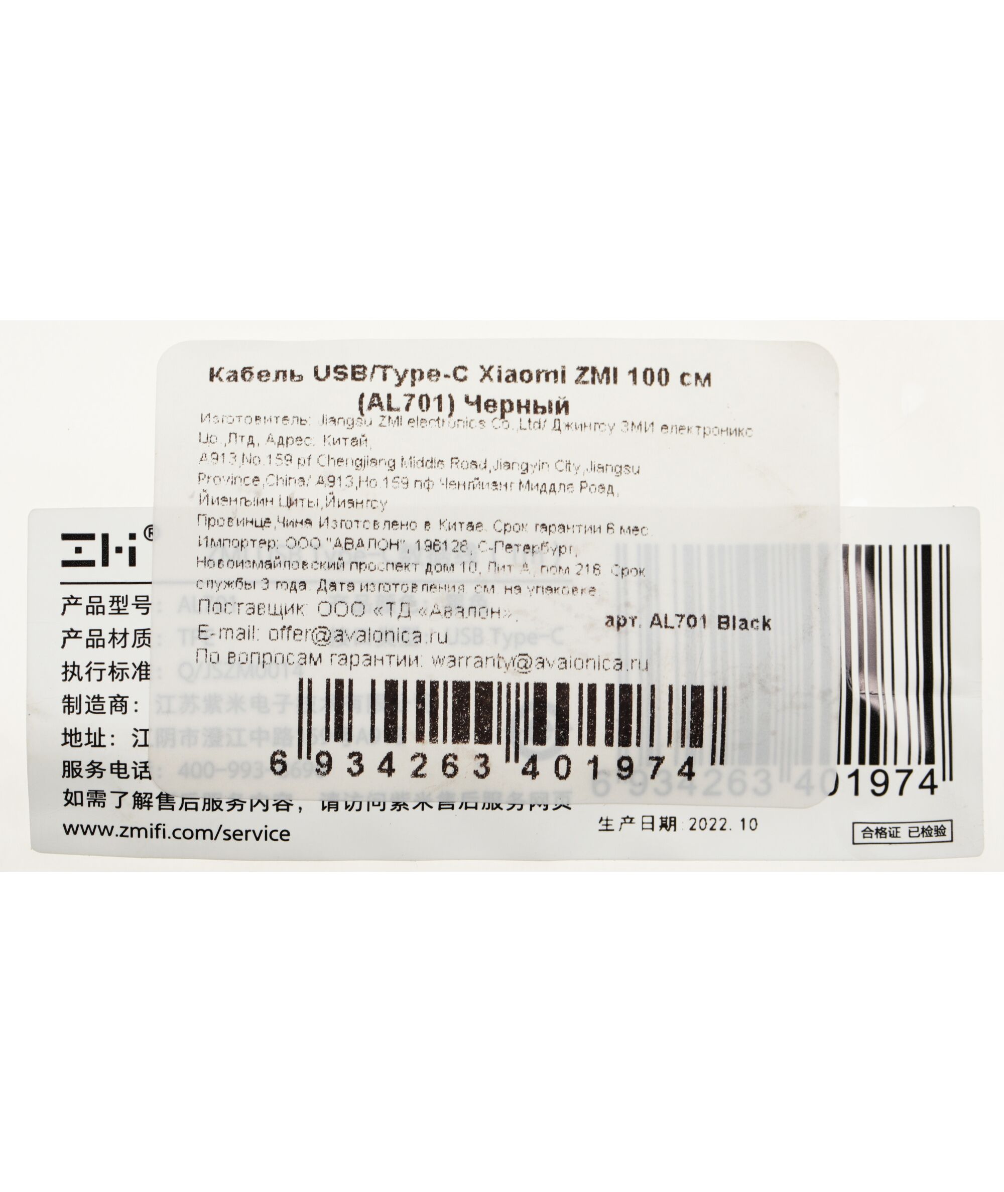 Кабель ZMI AL701 BLACK USB (m)-USB Type-C (m) 1м черный