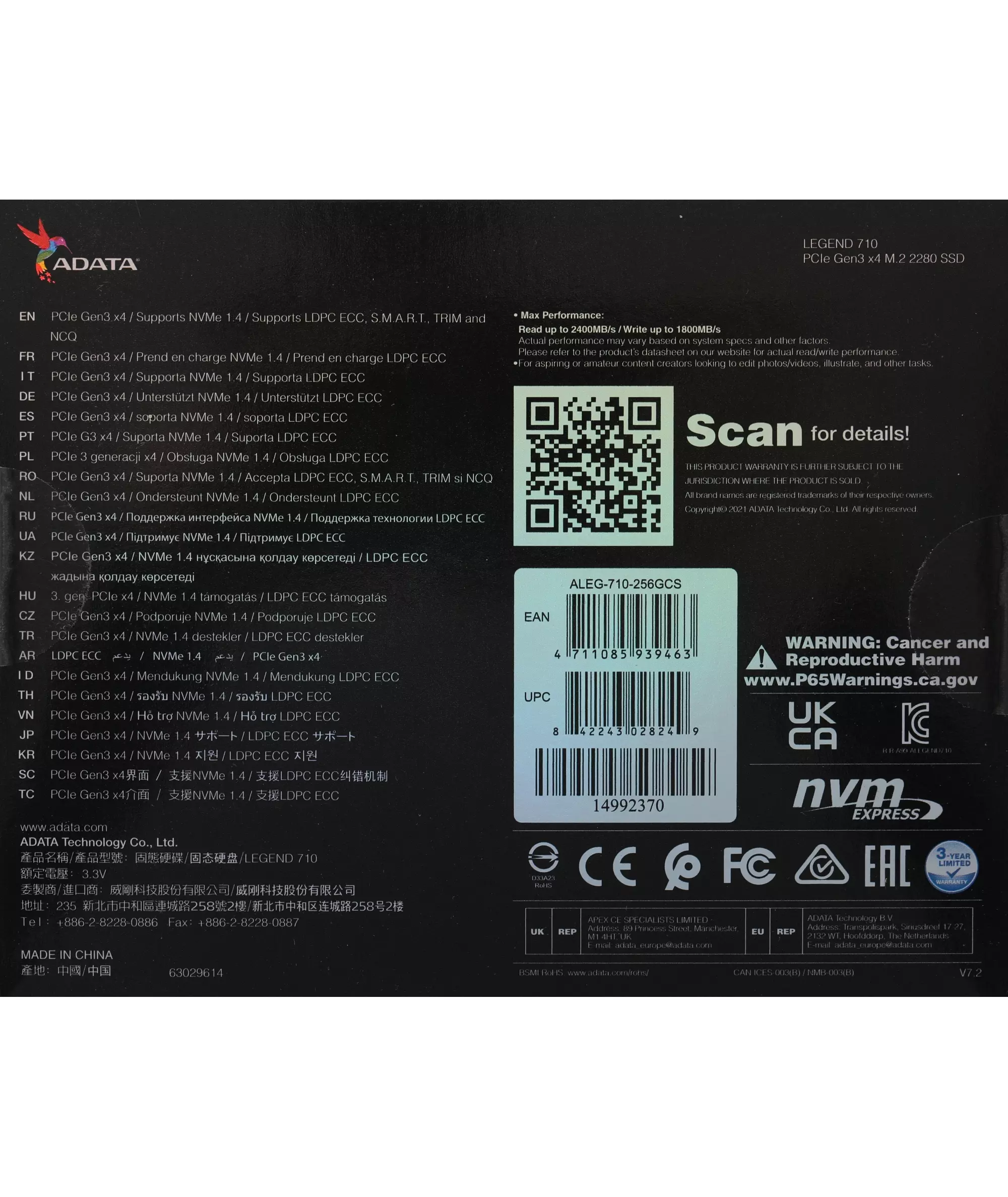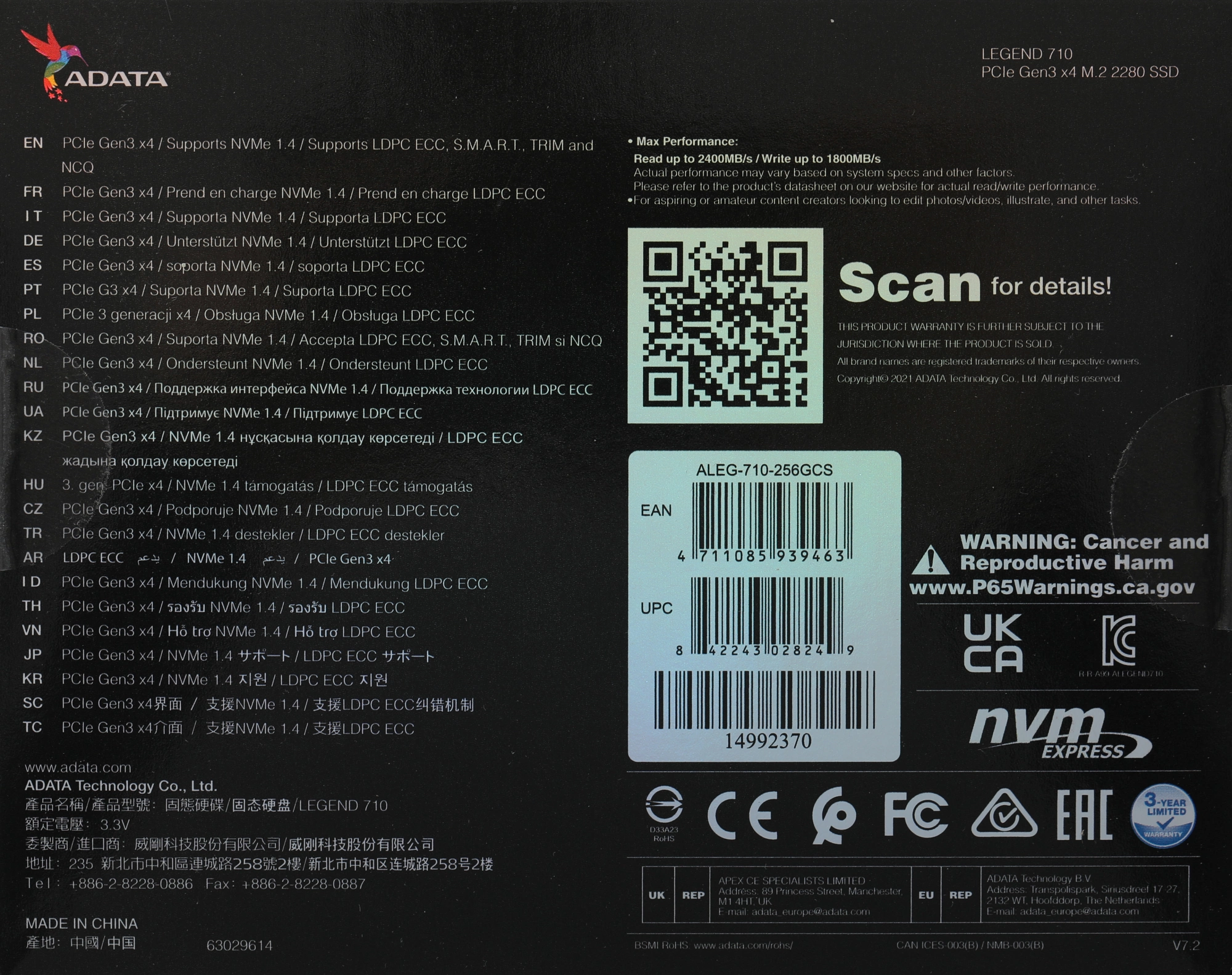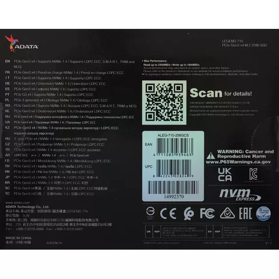 Описание AData 256Gb Legend 710 [ALEG-710-256GCS]