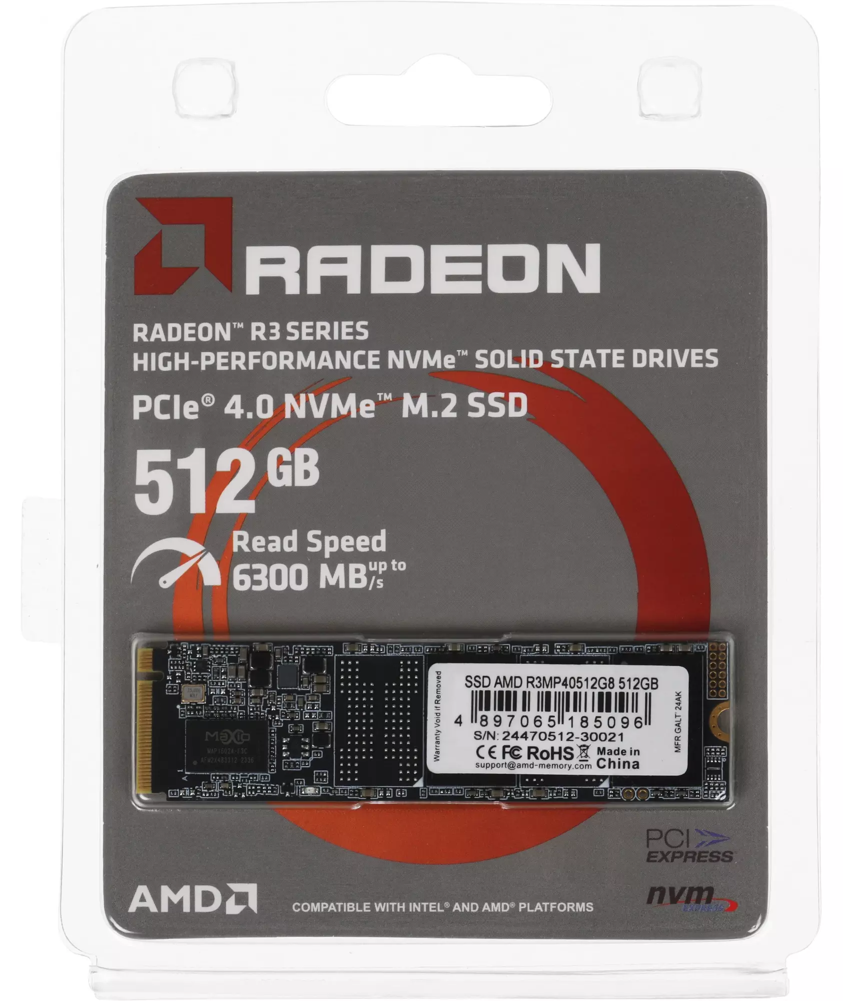 Накопитель SSD AMD 512GB Radeon PCIe 4.0 x4 M.2 2280 [R3MP40512G8]