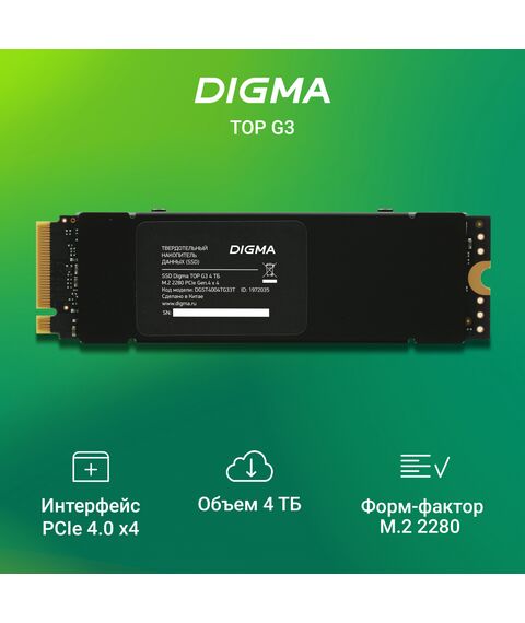 SSD-накопитель Digma 4Tb Top G3 PCIe 4.0 x4 M.2 2280 [DGST4004TG33T]