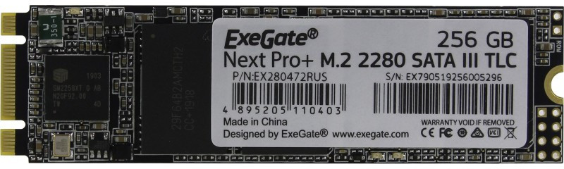 Накопитель Exegate 256 Gb Next Pro+ M.2 2280 B&M 6Gb/s 3D TLC OEM [EX280472RUS]