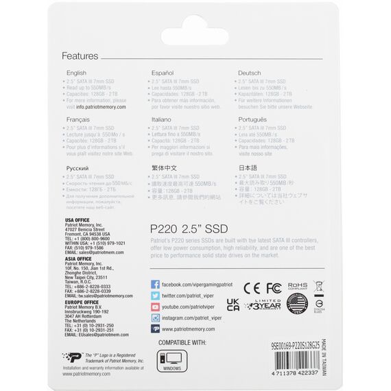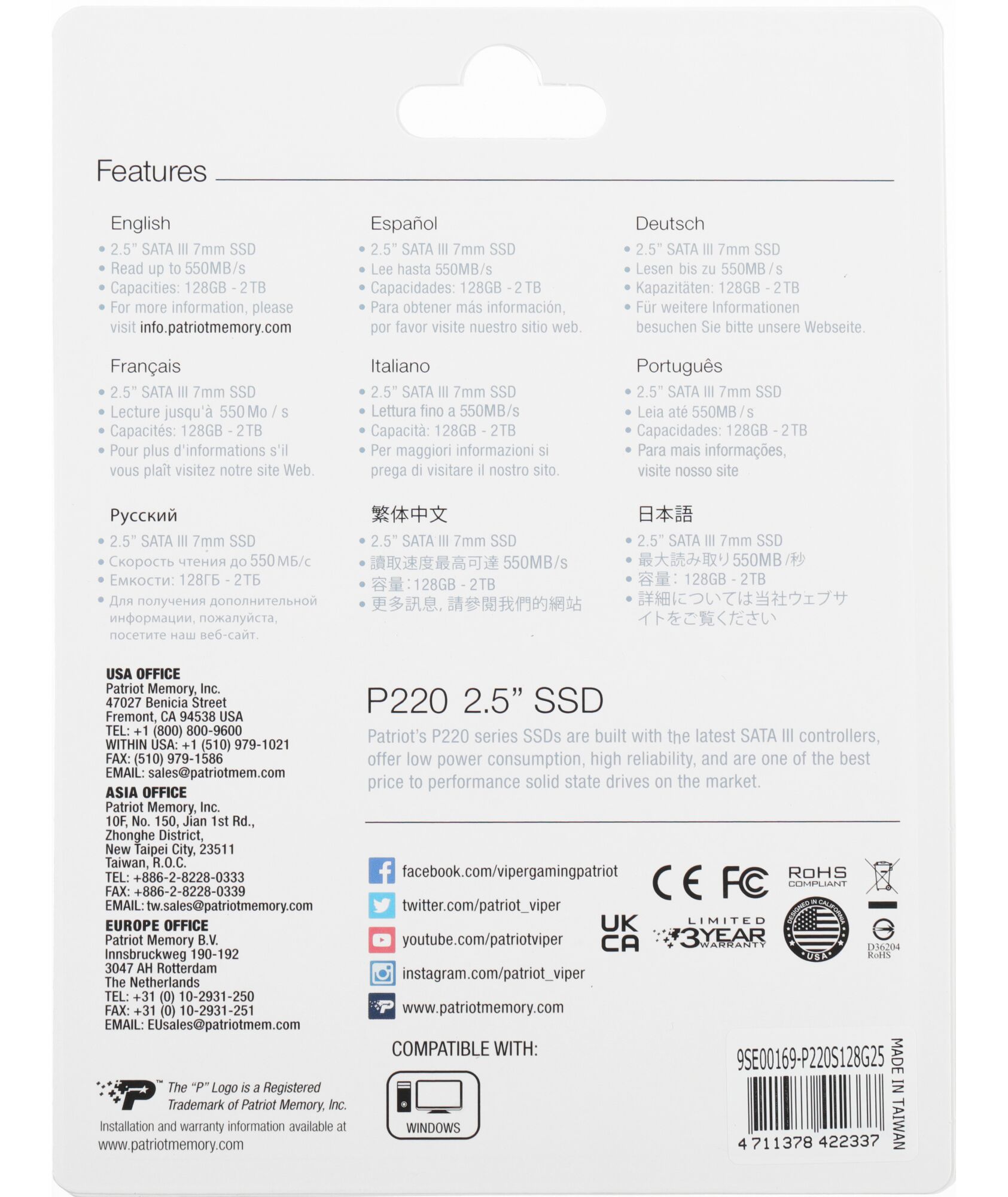 Накопитель SSD Patriot 128GB P220 SATA-III 2.5" [P220S128G25]