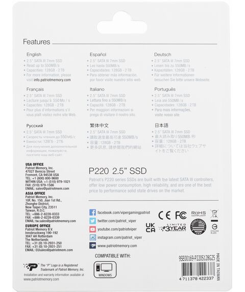 Наличие товара Patriot 128GB P220 [P220S128G25]