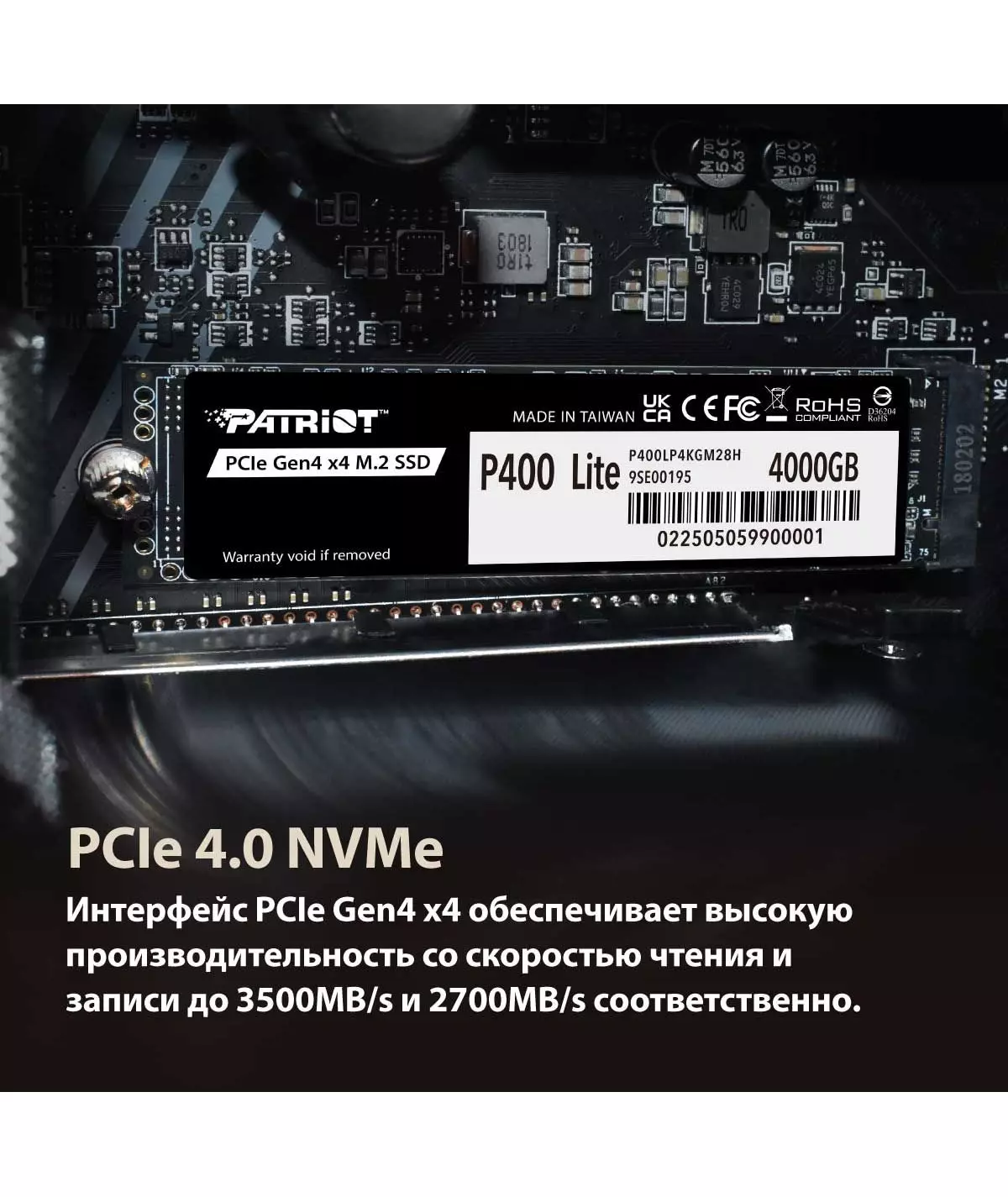 Накопитель SSD Patriot 1TB P400 Lite PCIe 4.0 x4 M.2 2280 [P400LP1KGM28H]