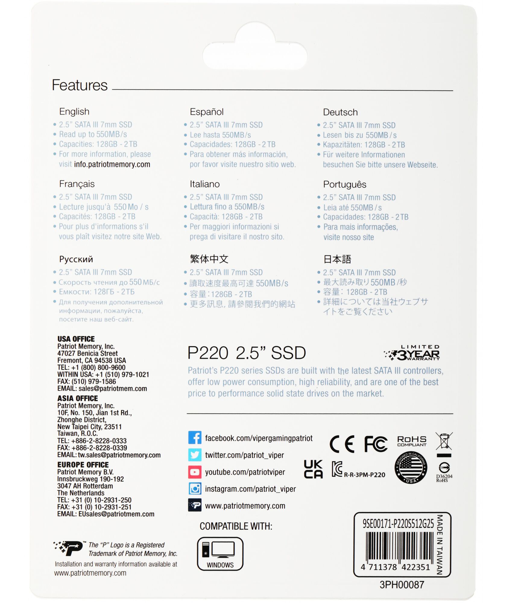 Накопитель SSD Patriot 512GB P220 SATA-III 2.5" [P220S512G25]
