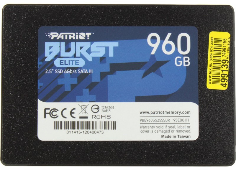Описание Patriot 960 Gb Burst Elite [PBE960GS25SSDR]