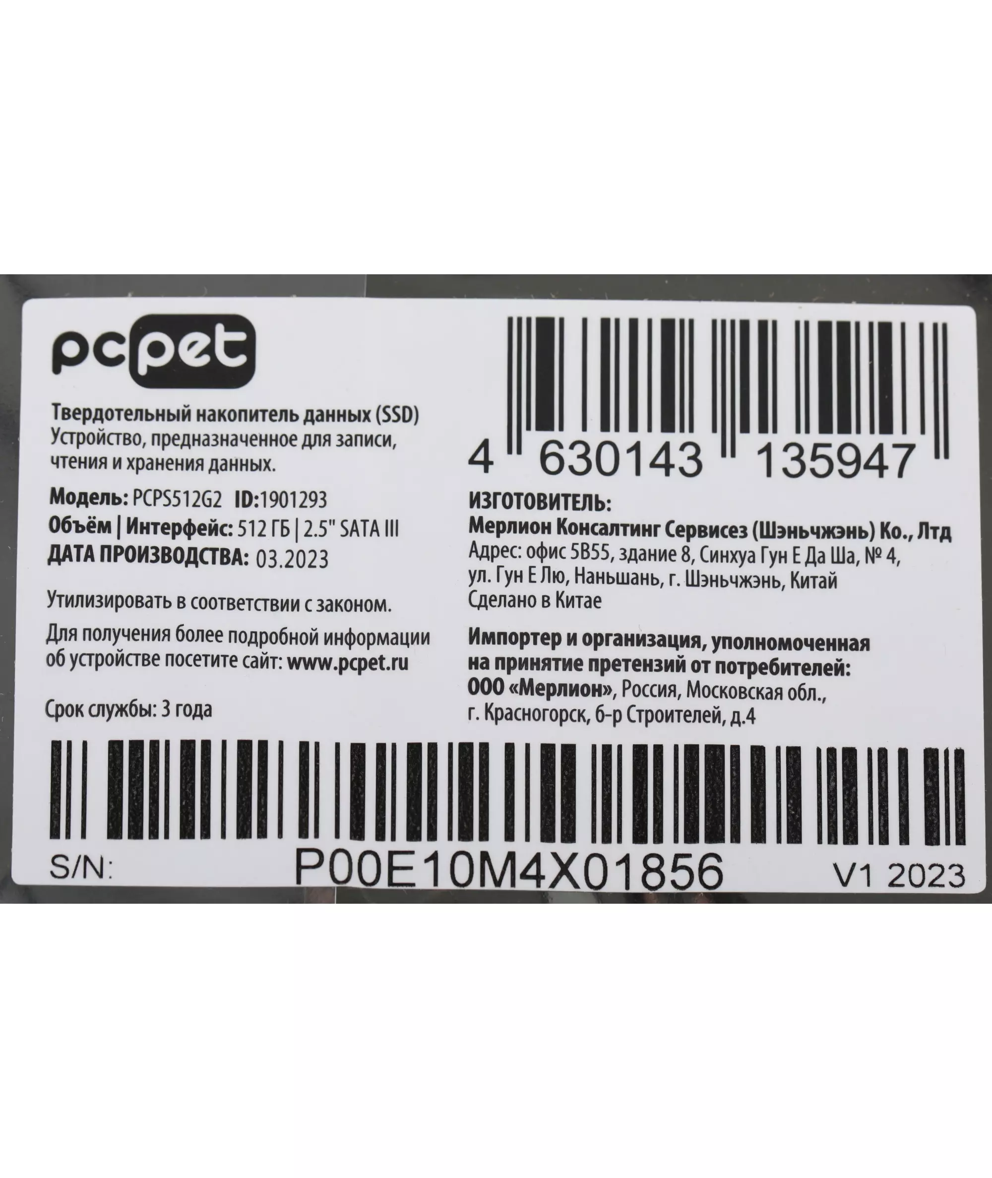 Накопитель SSD PC Pet 512Gb SATA III 2.5" OEM [PCPS512G2]