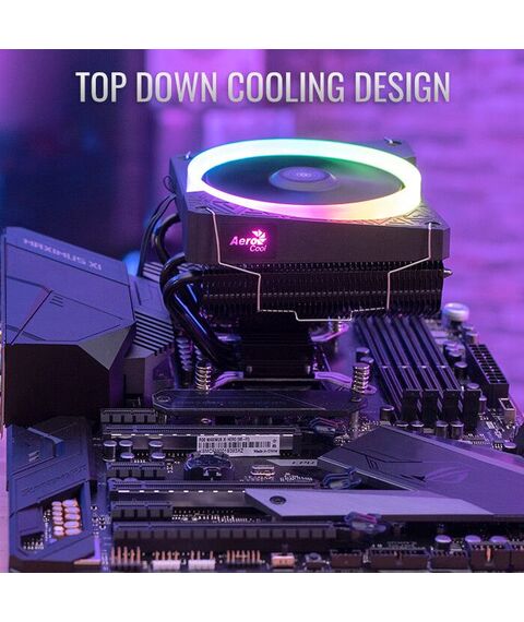 Устройство охлаждения (кулер) AeroCool Cylon 3H ARGB Soc-AM5/AM4/1200/1700/1851 черный 4-pin 13-24dB Al+Cu 125W 480gr RTL [CYLON 3H ARGB PWM 4P]
