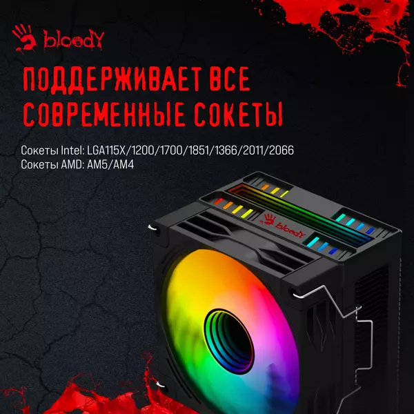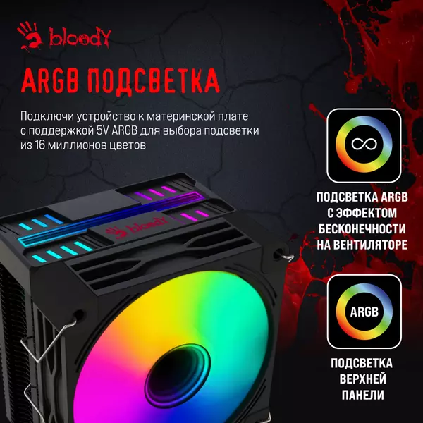 Устройство охлаждения(кулер) Bloody BD-AC150-ARGB1-BK ARGB Soc-AM5/AM4/1200/1700/1851 черный 4-pin 11-23dB Al+Cu LCD 150W 365gr RTL