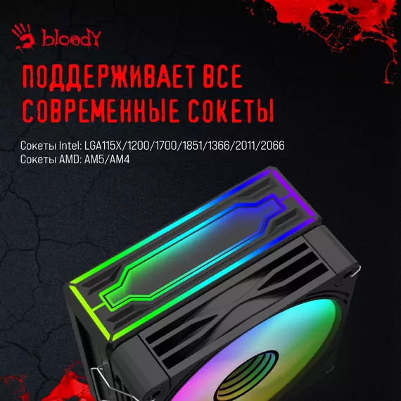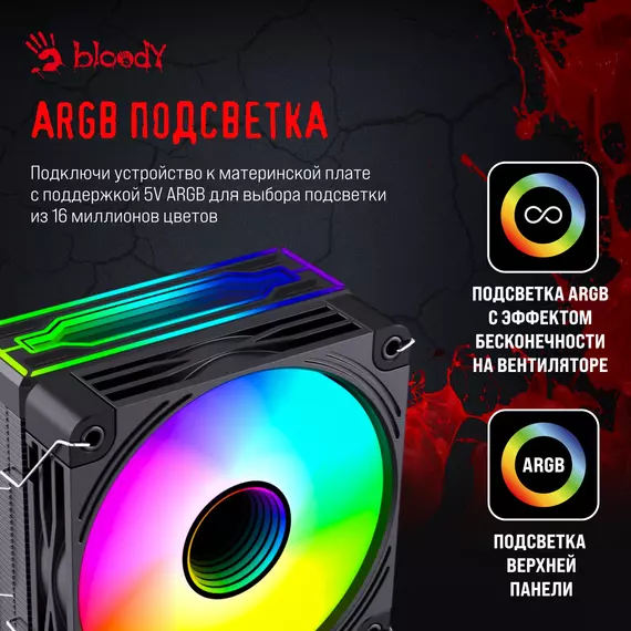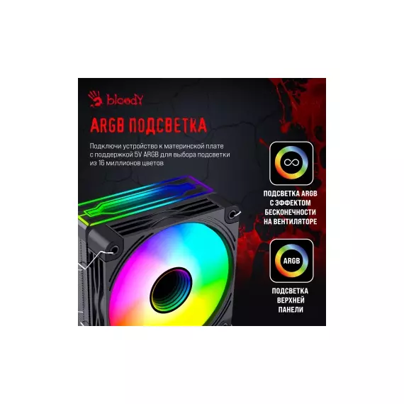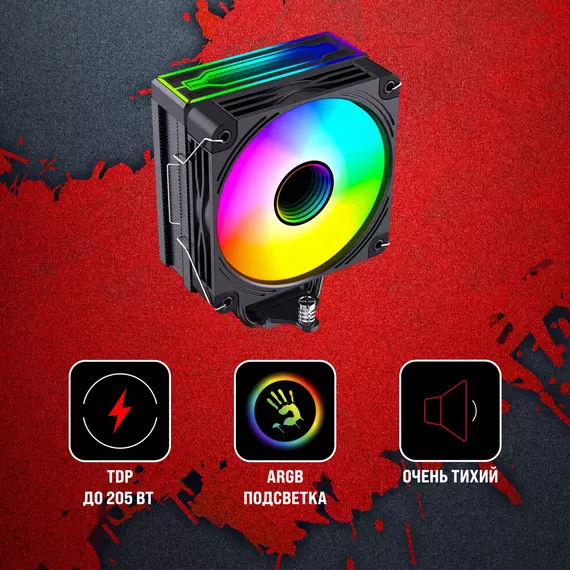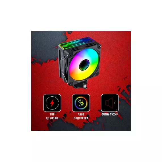Устройство охлаждения(кулер) Bloody BD-AC205-ARGB1 ARGB Soc-AM5/AM4/1200/1700/1851 черный 4-pin 14-26dB Al+Cu LCD 205W 513gr RTL [BD-AC205-ARGB1-BK]