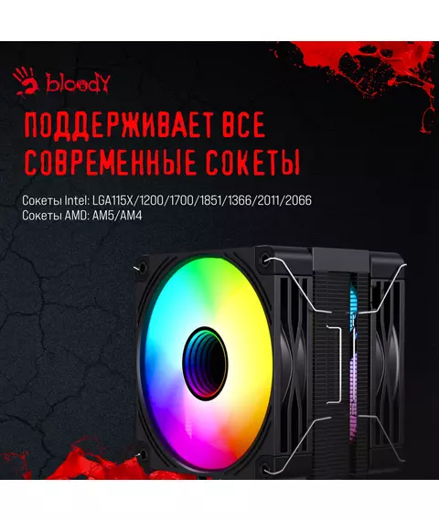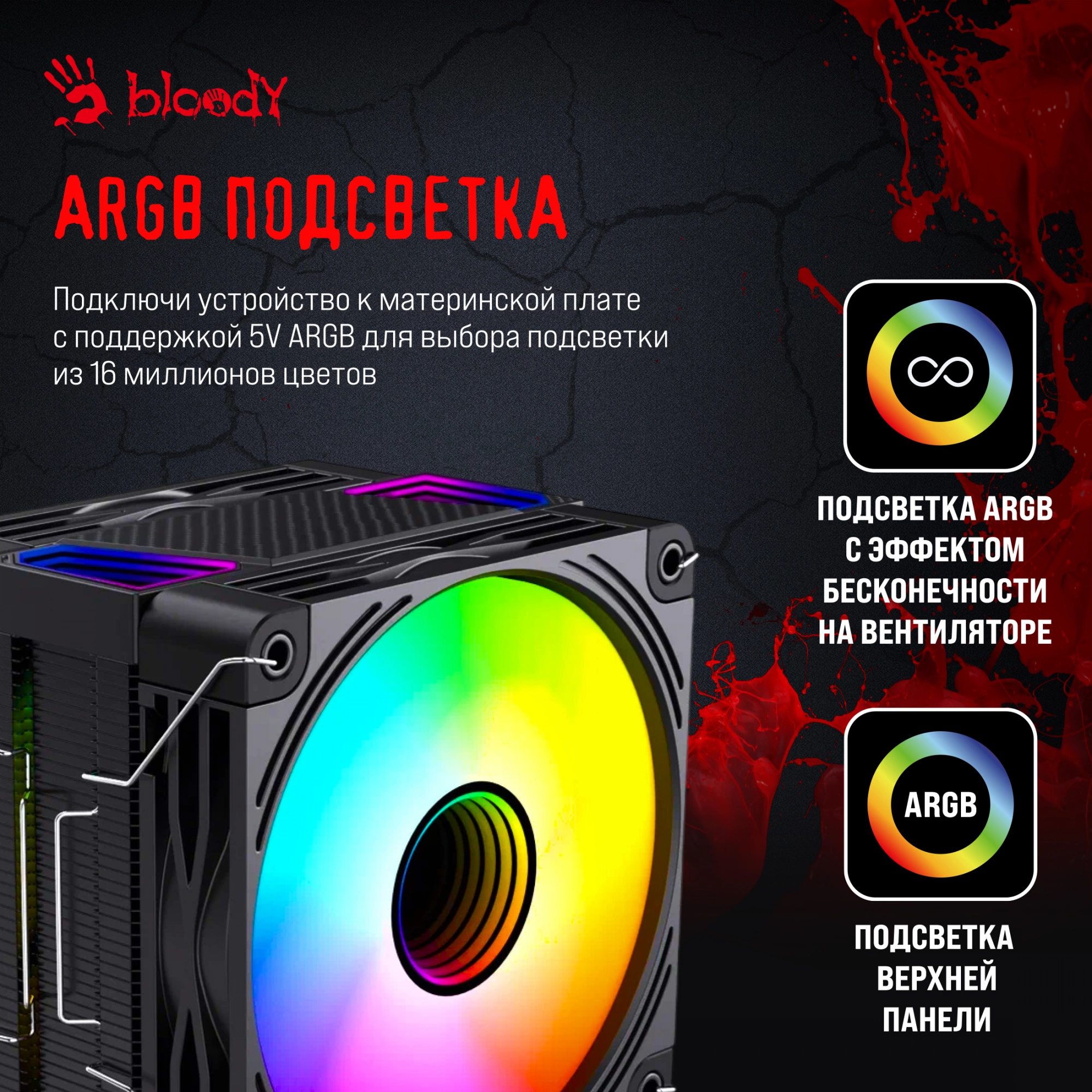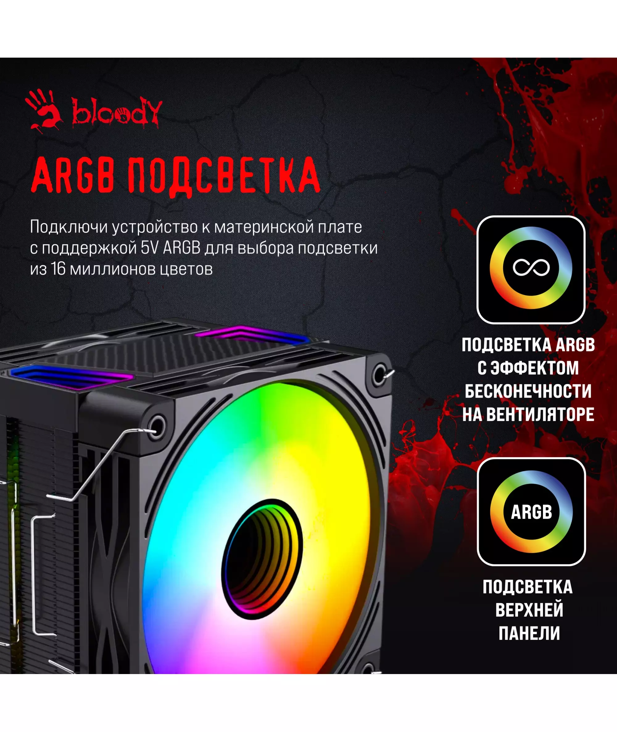 Устройство охлаждения(кулер) Bloody BD-AC230-ARGB1 ARGB Soc-AM5/AM4/1200/1700/1851 черный 4-pin 22-32dB Al+Cu LCD 230W 715gr RTL [BD-AC230-ARGB1-BK]