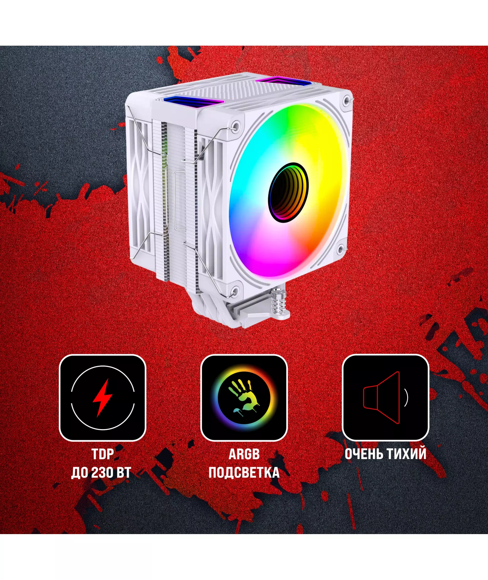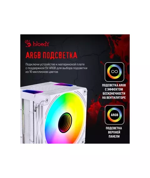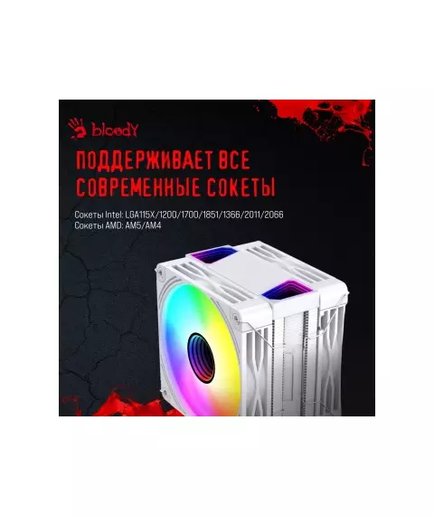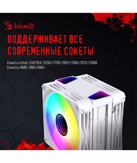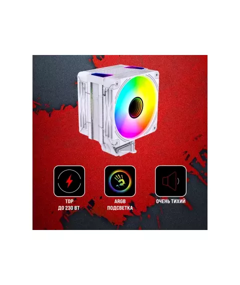 Устройство охлаждения Bloody BD-AC230-ARGB1 ARGB Soc-AM5/AM4/1200/1700/1851 белый 4-pin 22-32dB Al+Cu LCD 230W 715gr RTL [BD-AC230-ARGB1-WH]