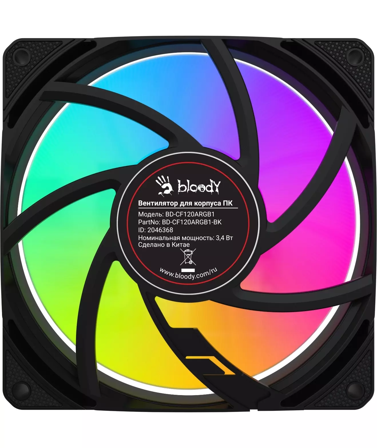 Вентилятор для корпуса Bloody BD-CF120ARGB1 ARGB 120х120x25 черный 4-pin 26дБ RTL [BD-CF120ARGB1-BK]