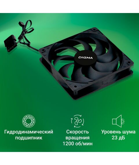 Вентилятор для корпуса Digma DFAN-120-9 120х120x25 черный 3-pin 4-pin (Molex) 23дБ RTL