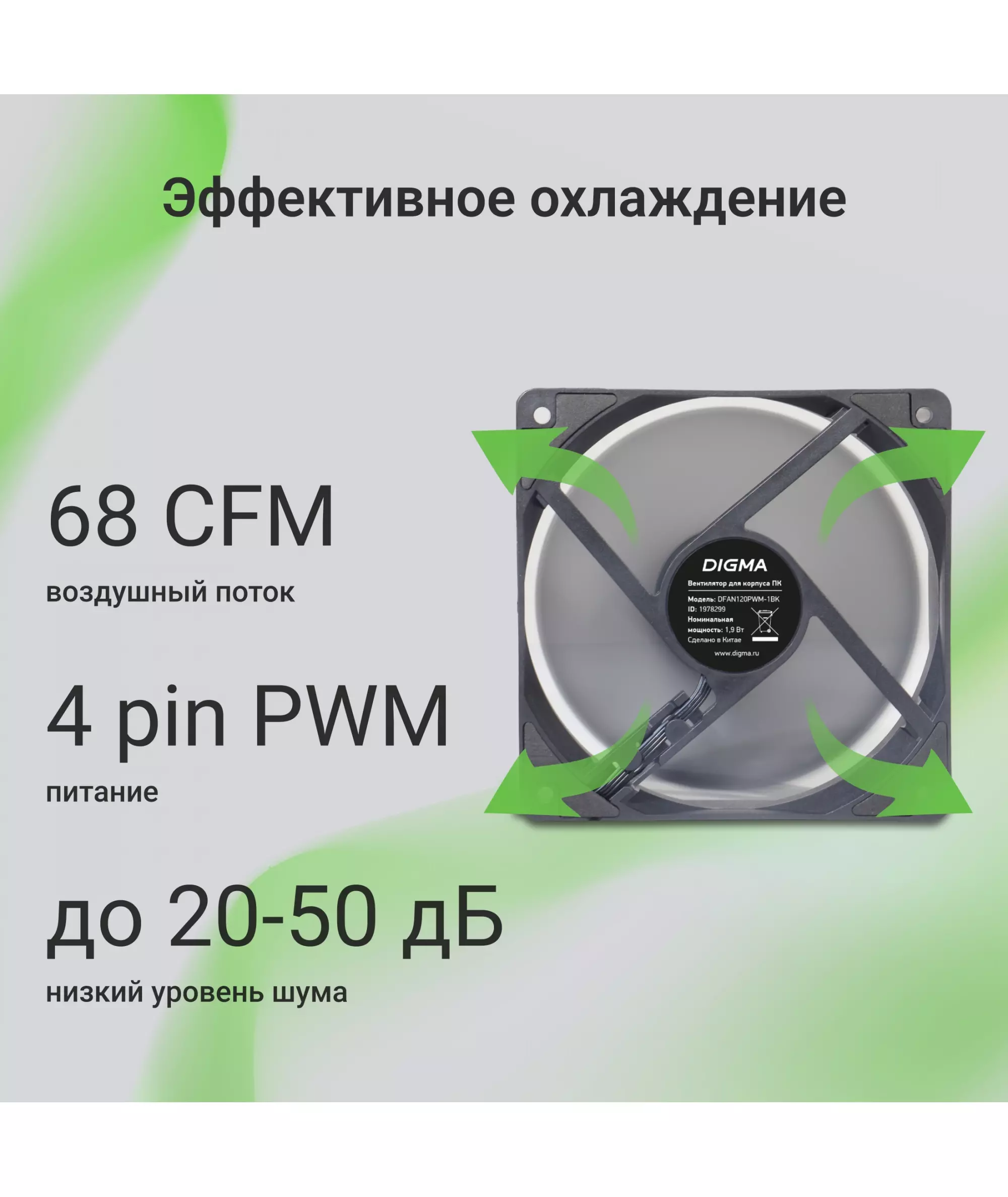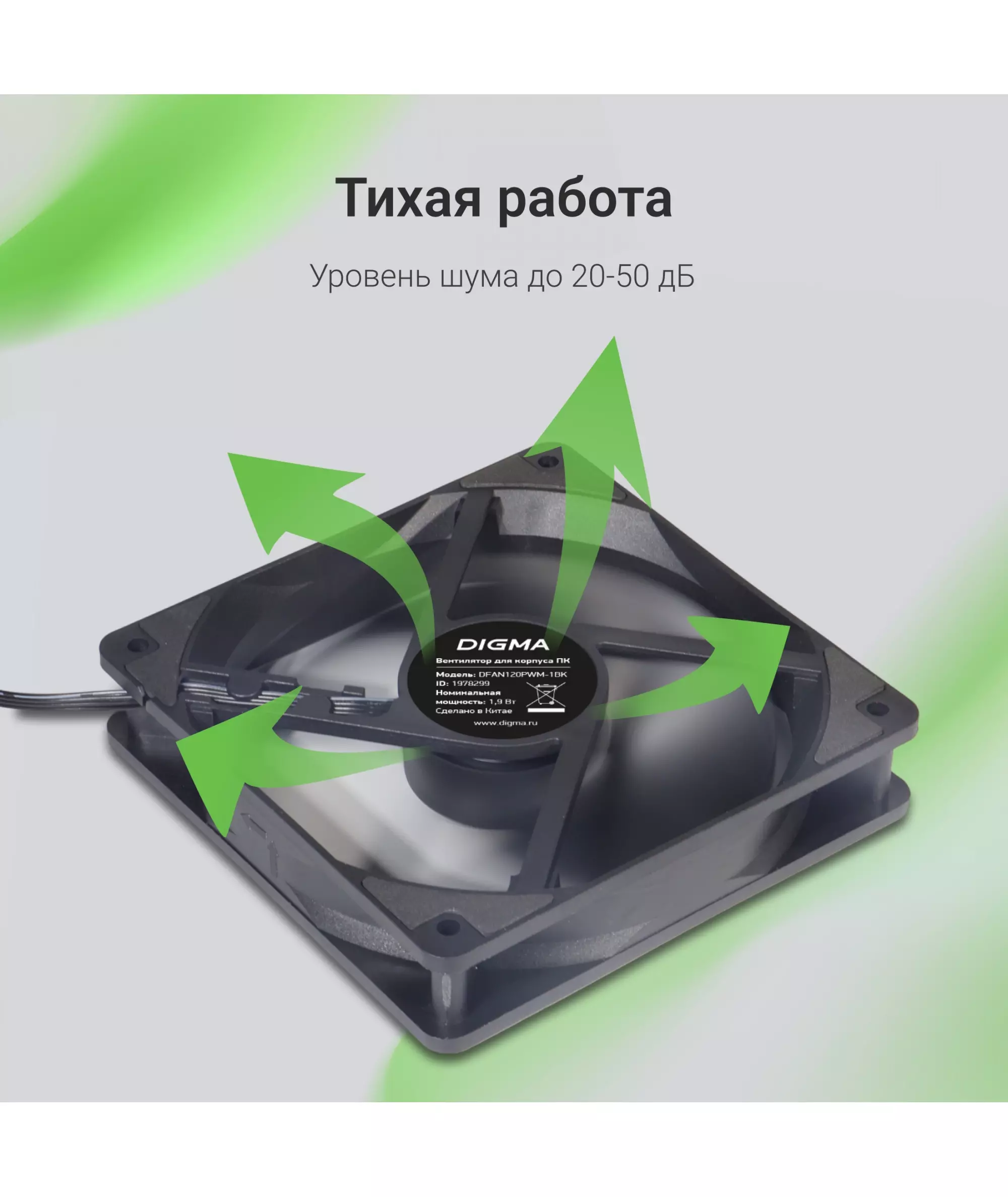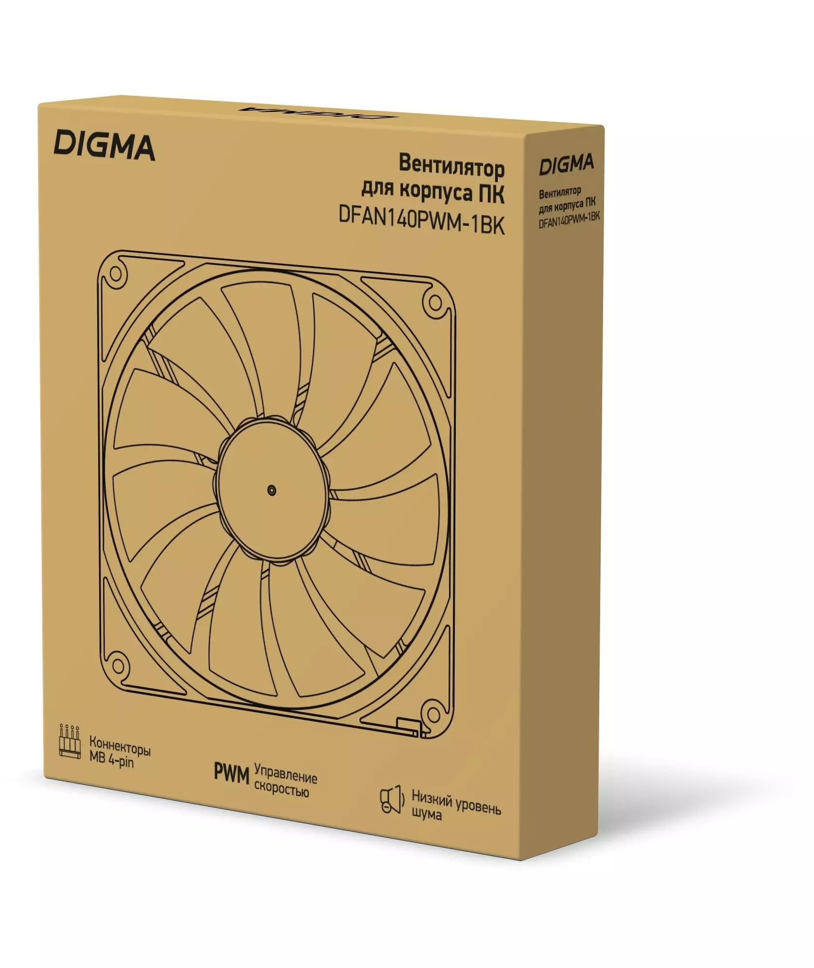 Вентилятор для корпуса Digma DFAN140PWM-1BK 140х140x25 черный 4-pin 28дБ RTL