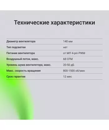 | Мин. скорость вращения вентилятора | 800 об/мин |