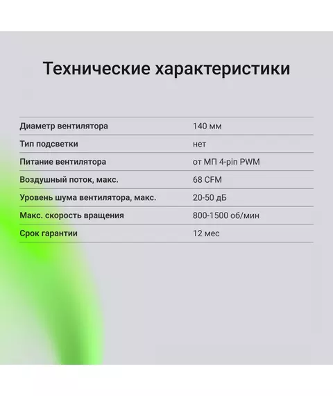 | Потребляемая мощность вентилятора | 3.6 Вт |