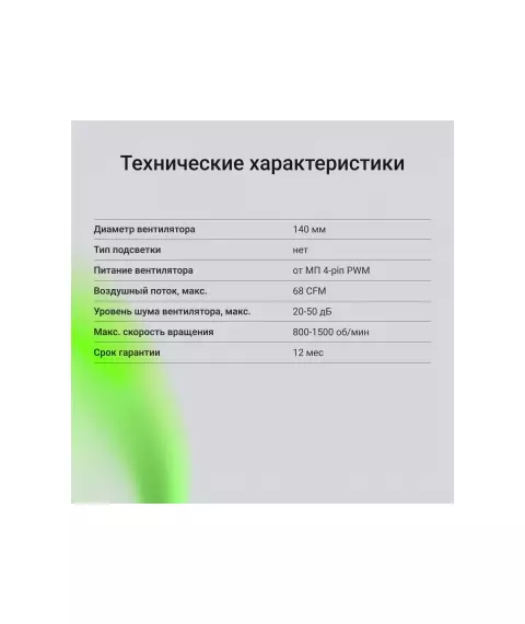 | Макс. скорость вращения вентилятора | 1500 об/мин |