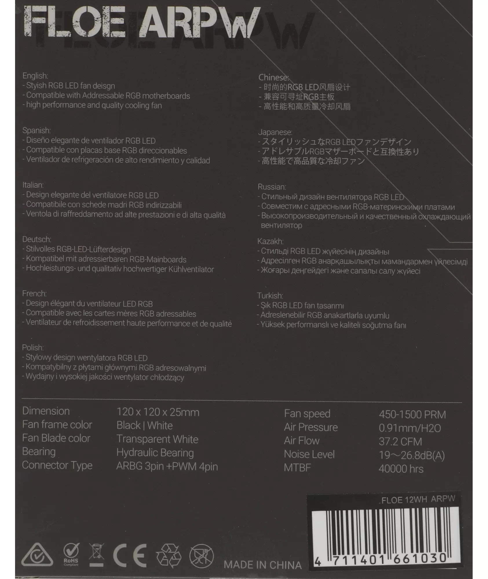 Вентилятор для корпуса Formula Floe 12WH ARGB 120х120x25 белый 4-pin 26.8дБ RTL [FLOE 12WH ARPW]