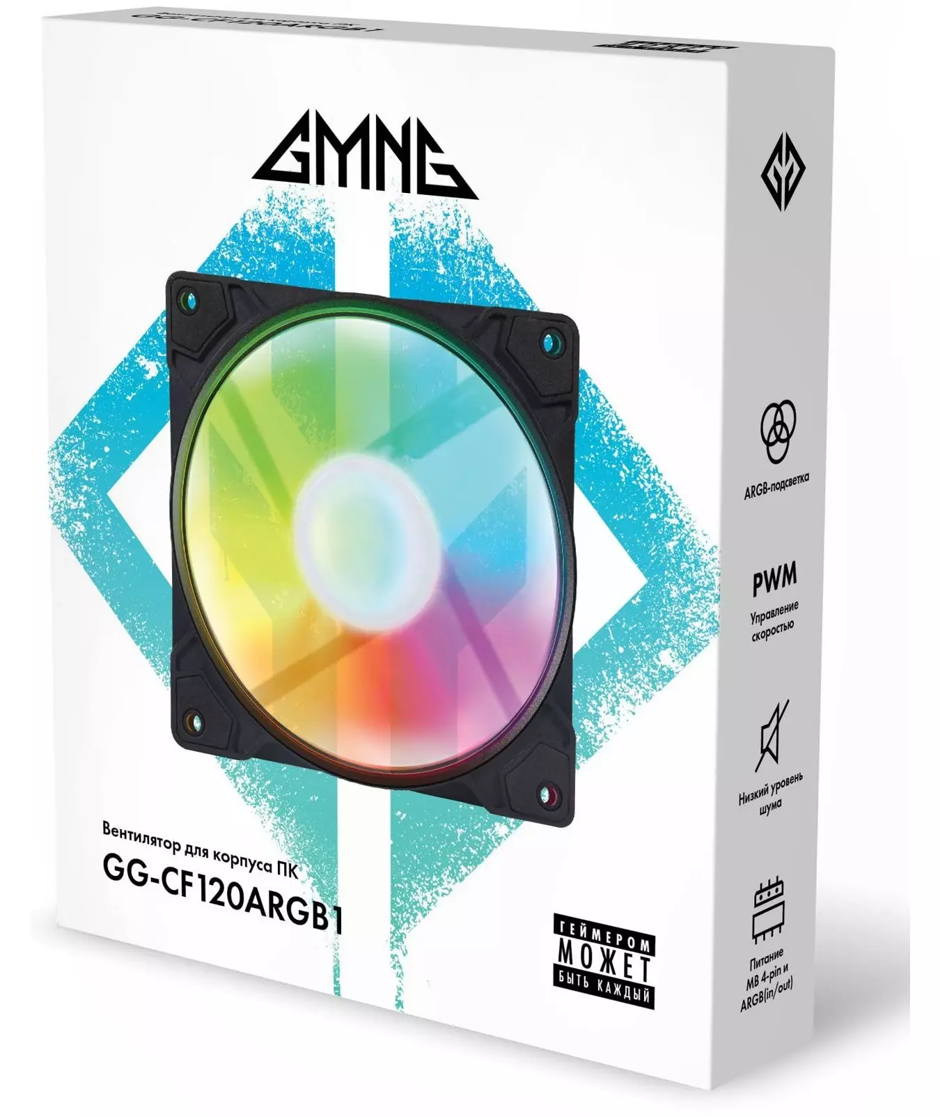 Вентилятор для корпуса GMNG GG-CF120ARGB1-PWMBK ARGB 120х120x25 черный 4-pin 26дБ RTL
