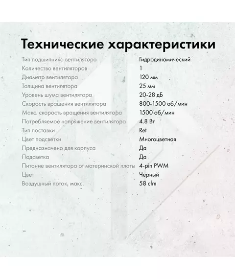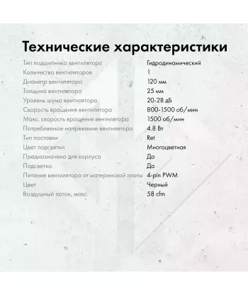 | Потребляемая мощность вентилятора | 4.8 Вт |