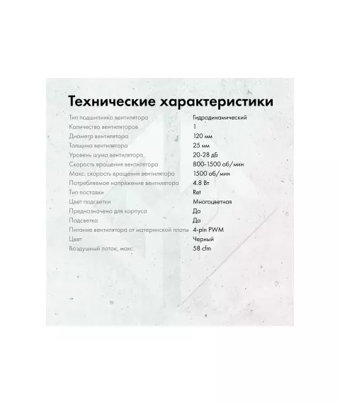 | Уровень шума вентилятора, макс. | 26 дБ |