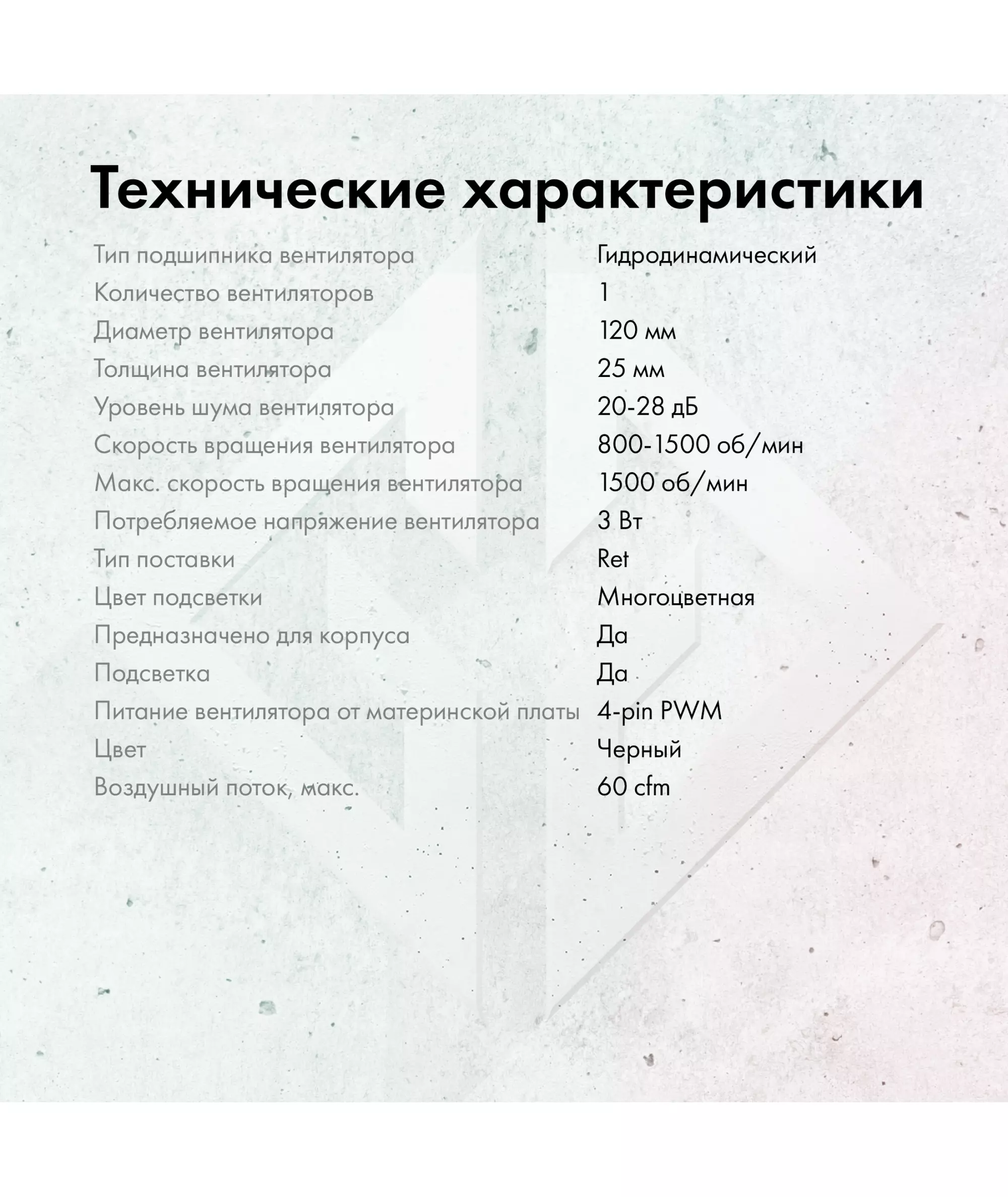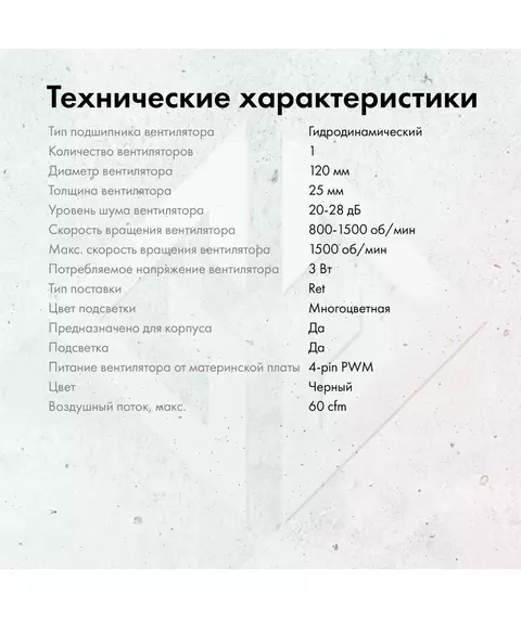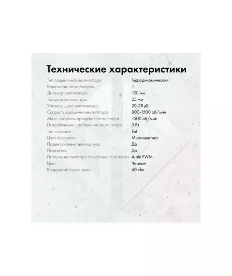 | Особенности системы охлаждения | PWM, подсветка |