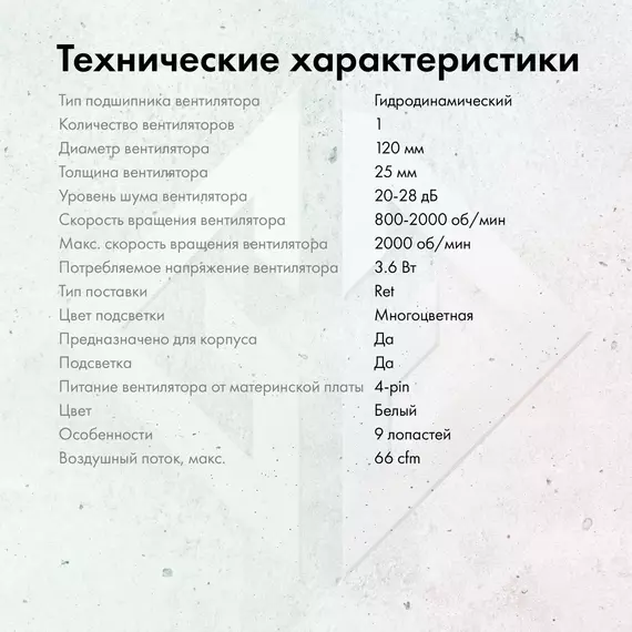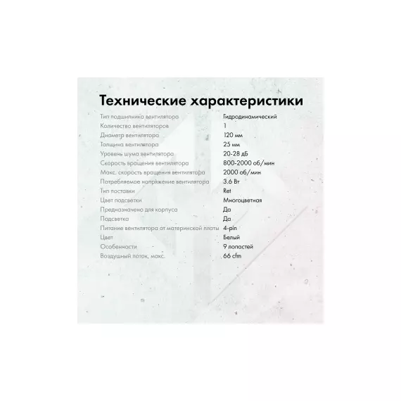 | Потребляемая мощность вентилятора | 3.6 Вт |