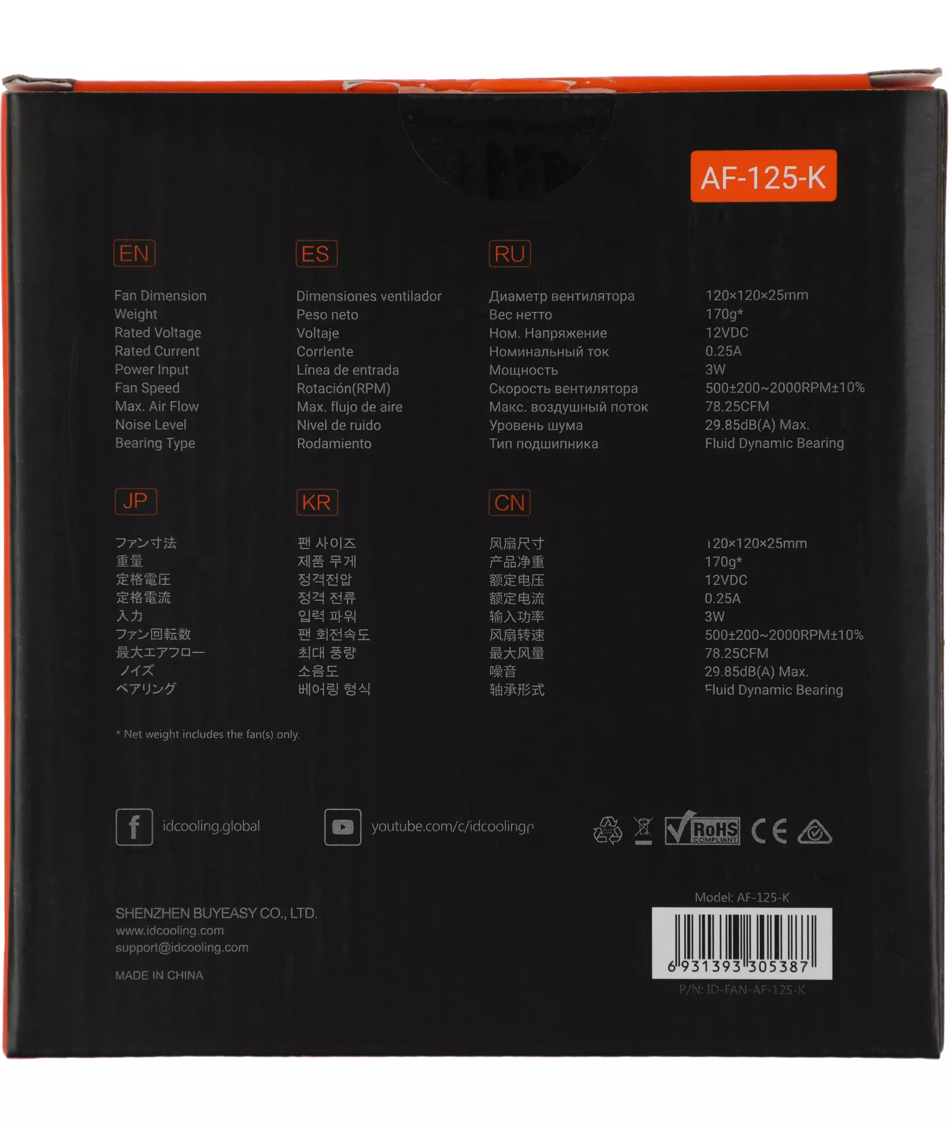 Вентилятор для корпуса ID-Cooling AF-125-K 120х120x25 черный 4-pin 30дБ RTL