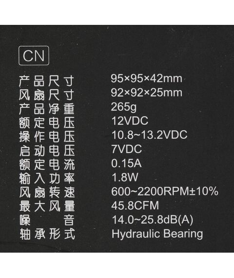 | Потребляемая мощность вентилятора | 1.8 Вт |