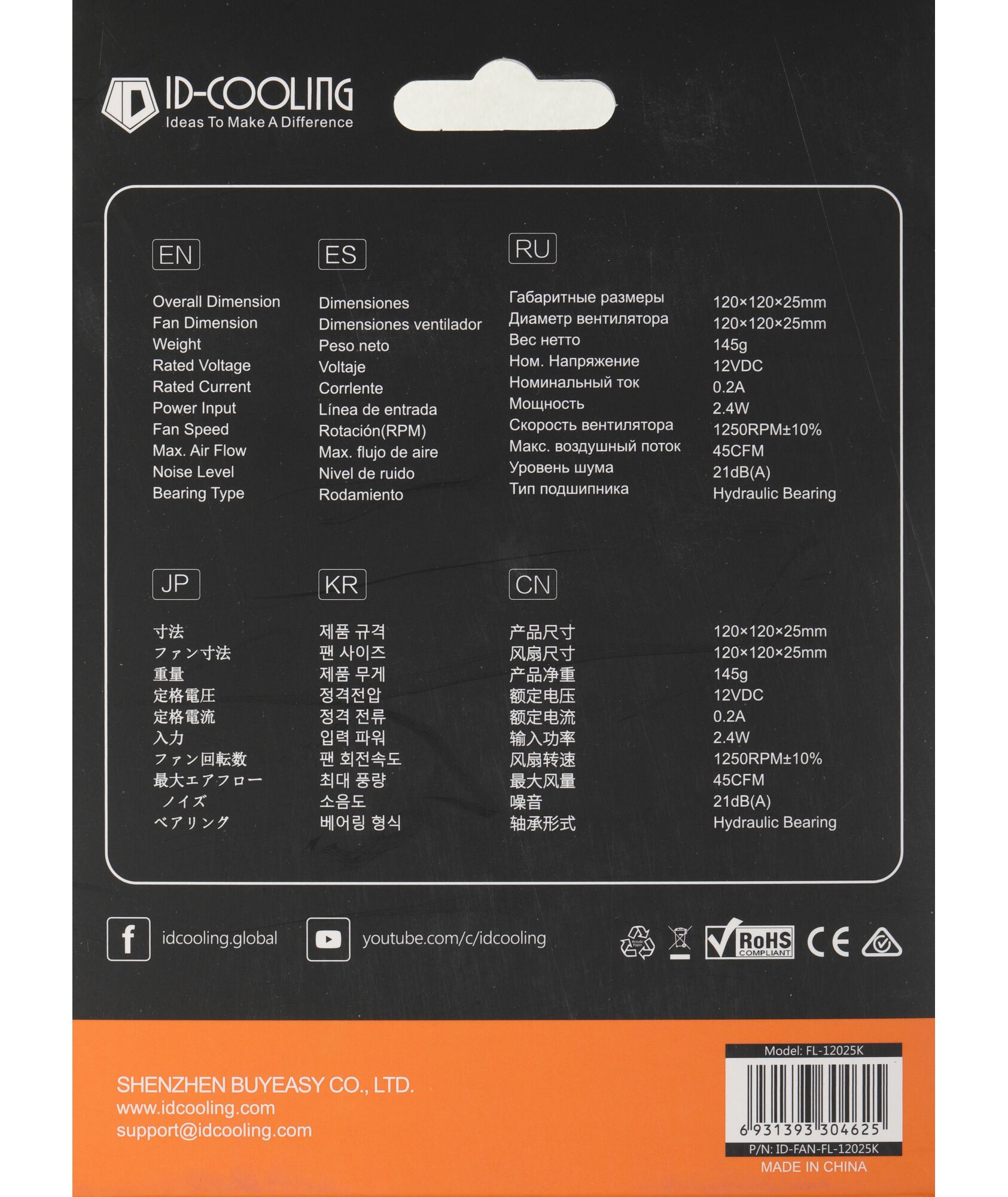 Вентилятор для корпуса ID-Cooling FL-12025K 120х120x25 черный 3-pin 21дБ RTL